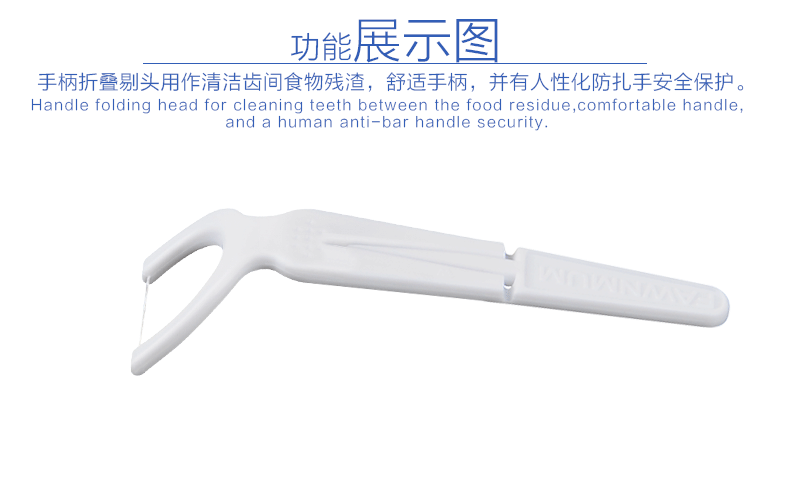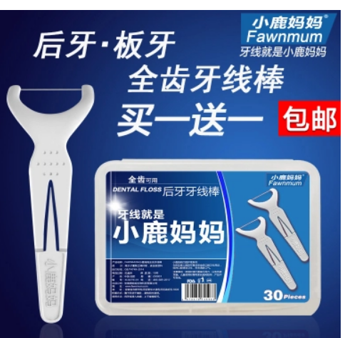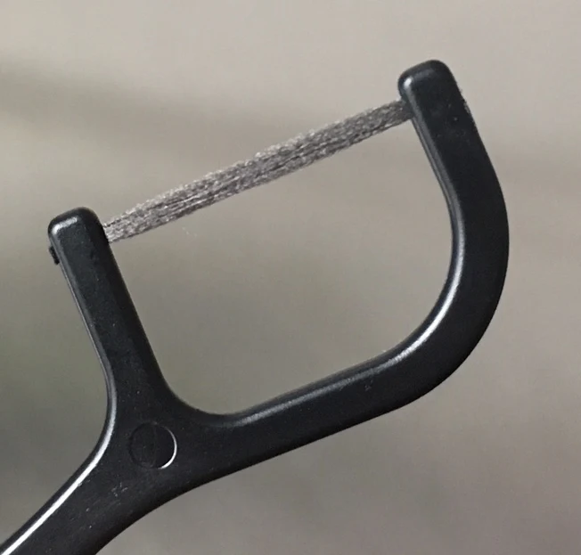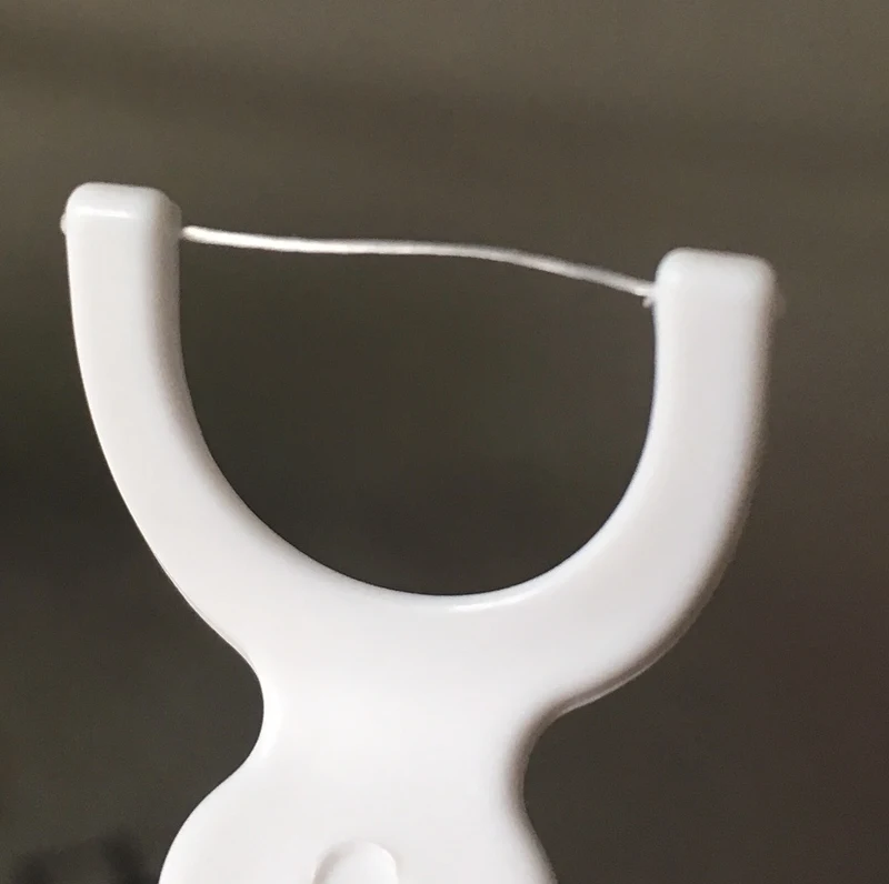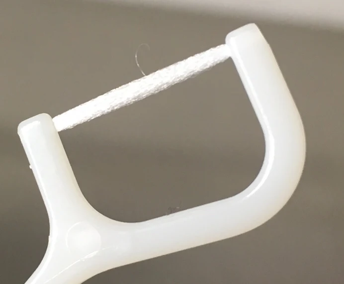 2. 形状是一股线而不是一排。在处理后牙缝的时候,不用将“弓背”正对着牙缝,只要将牙线的两端压下去,再“锯”几下,线就会进到牙缝了。(有可能是基于优点1)
