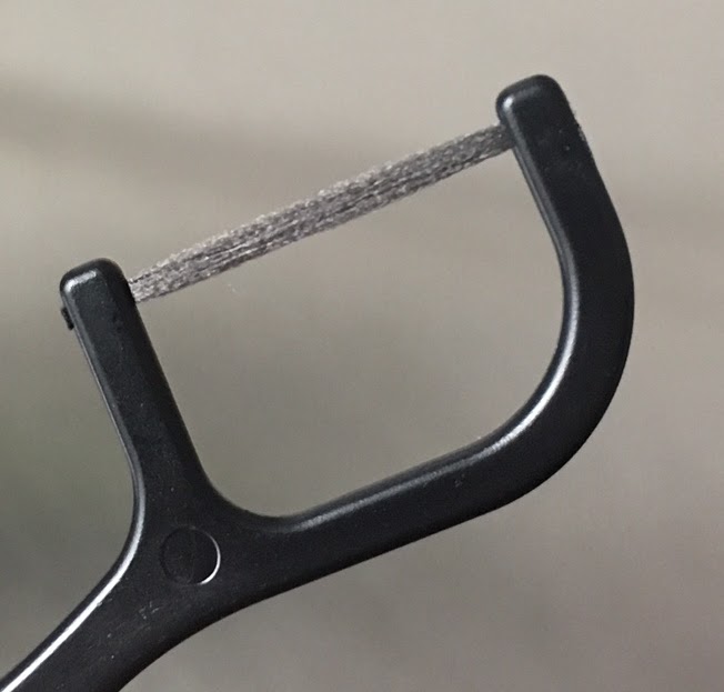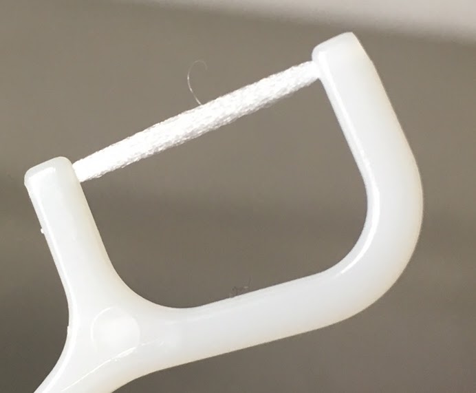 发现它的线的形状和前两种不一样,是一股而不是一排。实际使用进出牙缝更轻松。