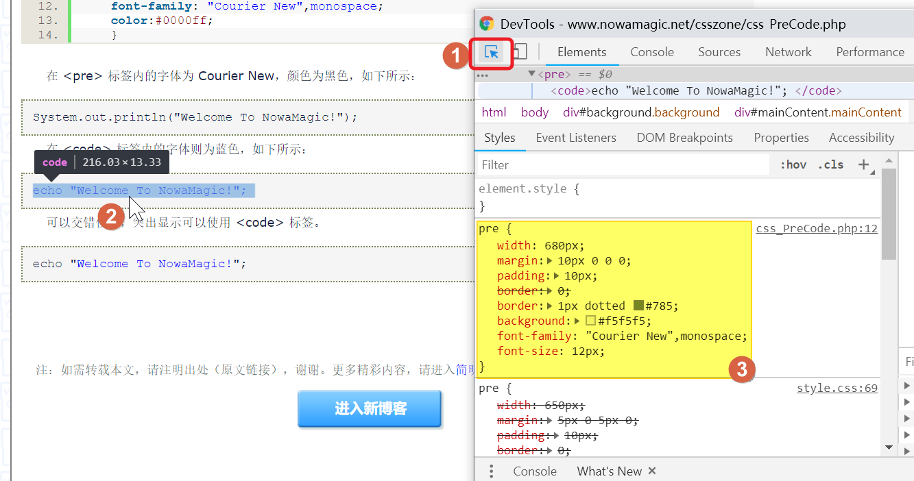 找到一段你喜欢的显示代码的页面,F12,弹出DevTool,选取页面的代码段元素,在DevTool里找到相应的CSS样式