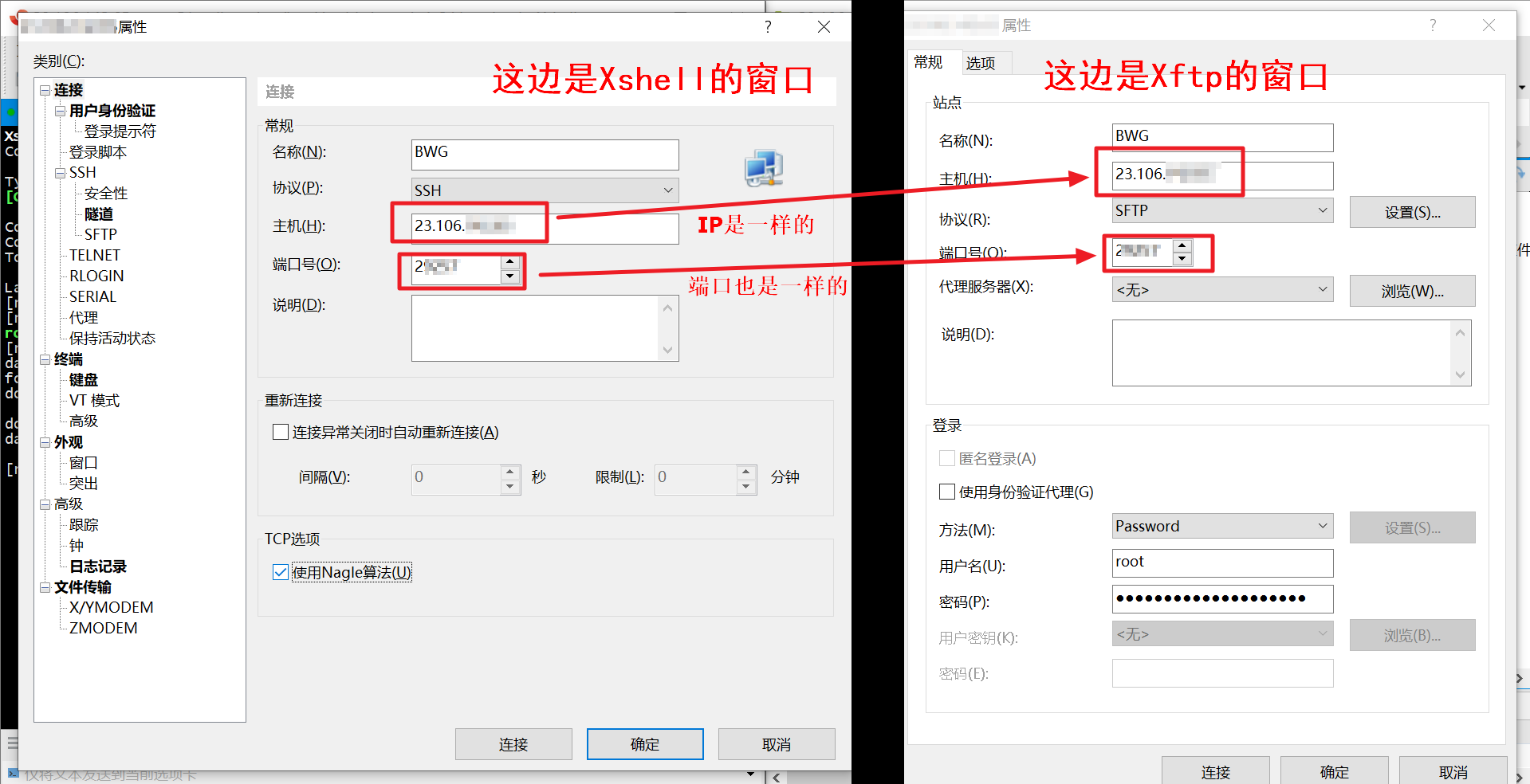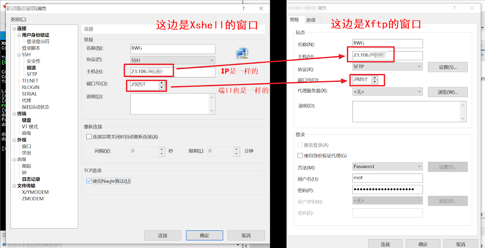 如果新建会话,用Xshell一样的IP地址和端口,用户名密码也一样。