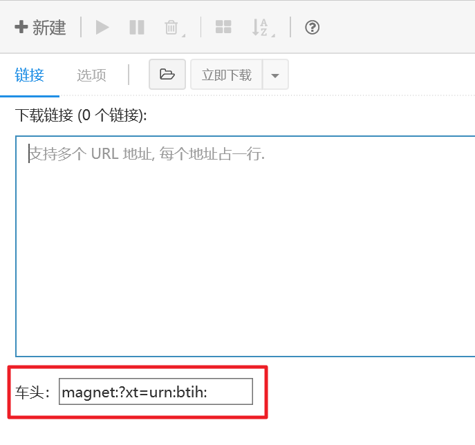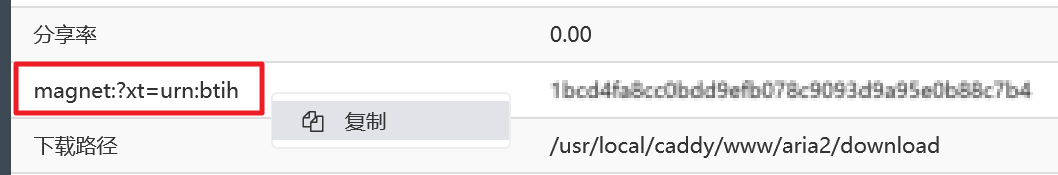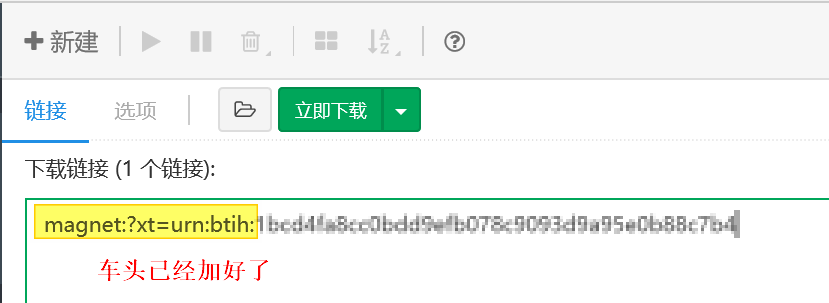 在 !/task/detail 页面,原本显示“特征值”,改为“magnet:?xt=urn:btih”。这样右键复制之后,可以直接在新建页面粘贴进去。