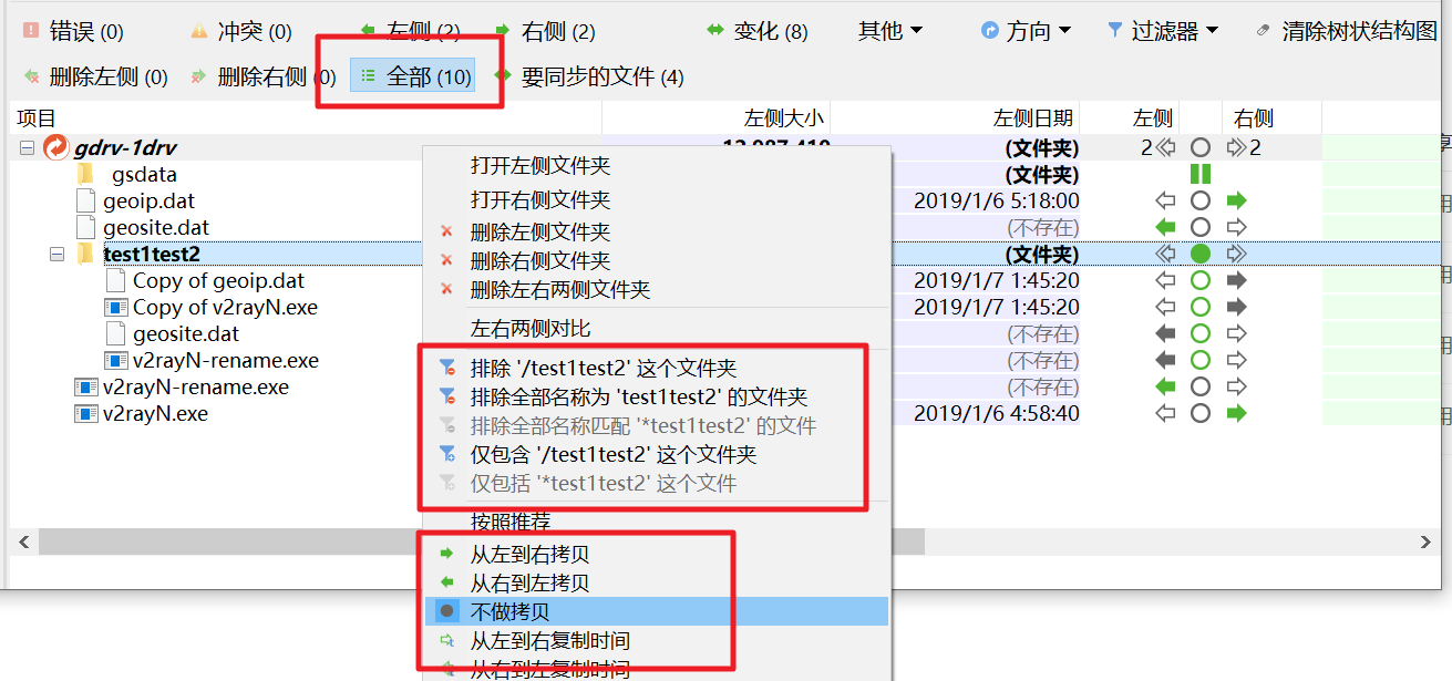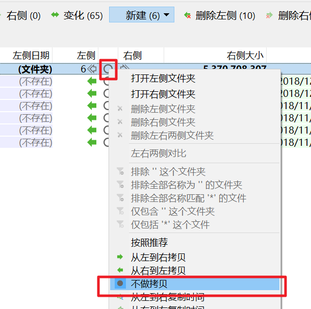 你可以对某个文件夹做临时调整,除了设置拷贝方向,还可以设置排除这个文件夹。