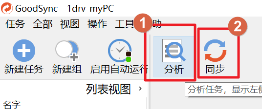 两边文件夹设置好以后,点“分析”,有必要时对分析结果做一些微调,再点“同步”就开始工作了。