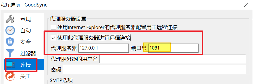 如果用到GoogleDrive的话,梯子开全局模式都不好使,直接在GoodSync里指定代理。