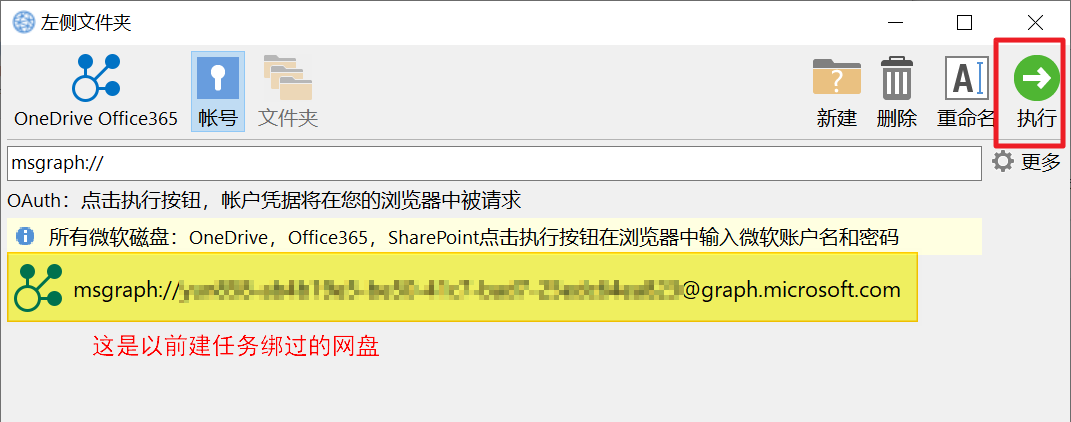 以前建任务绑过的网盘会在下面列出来,可以直接选择。
