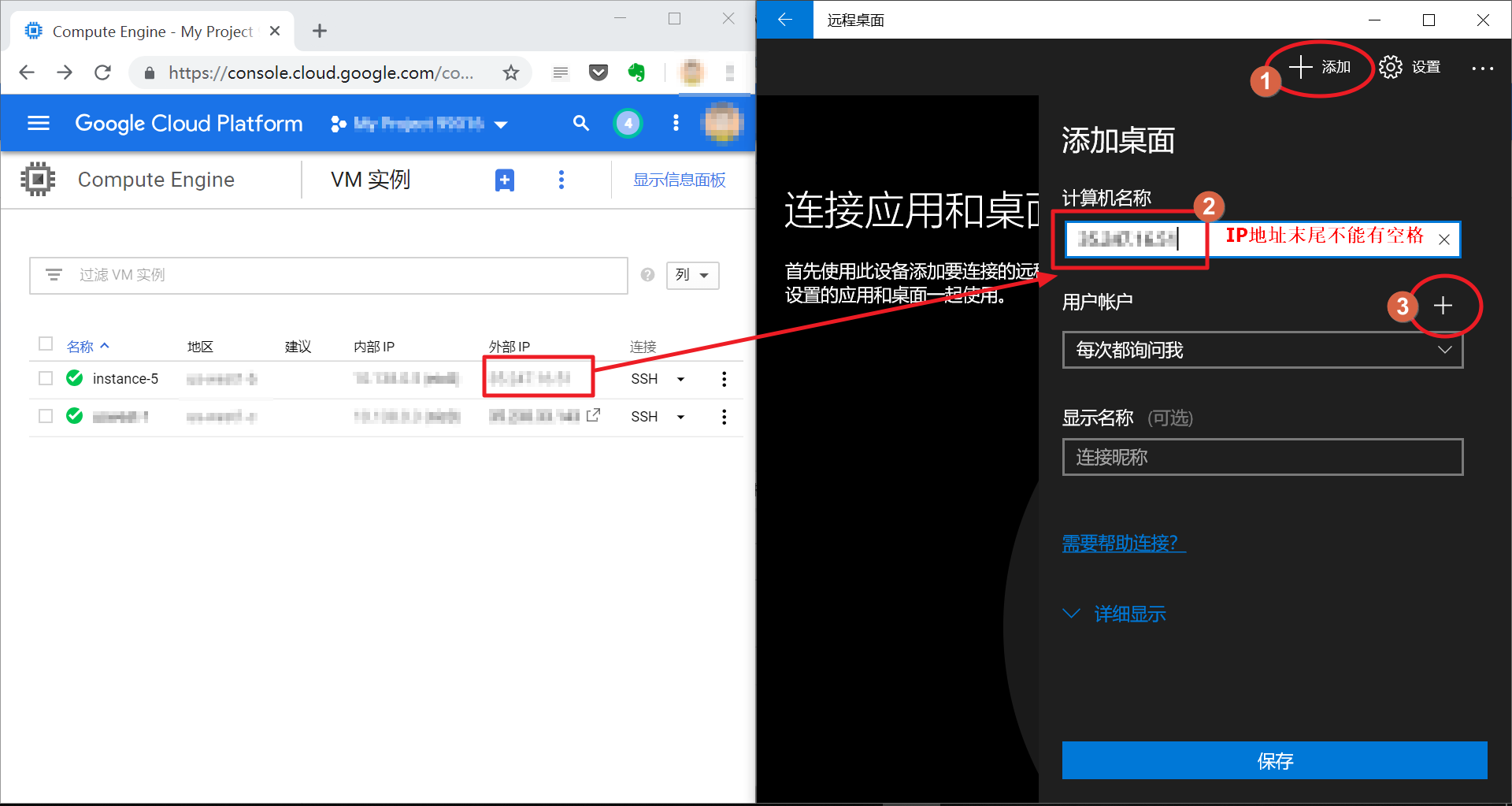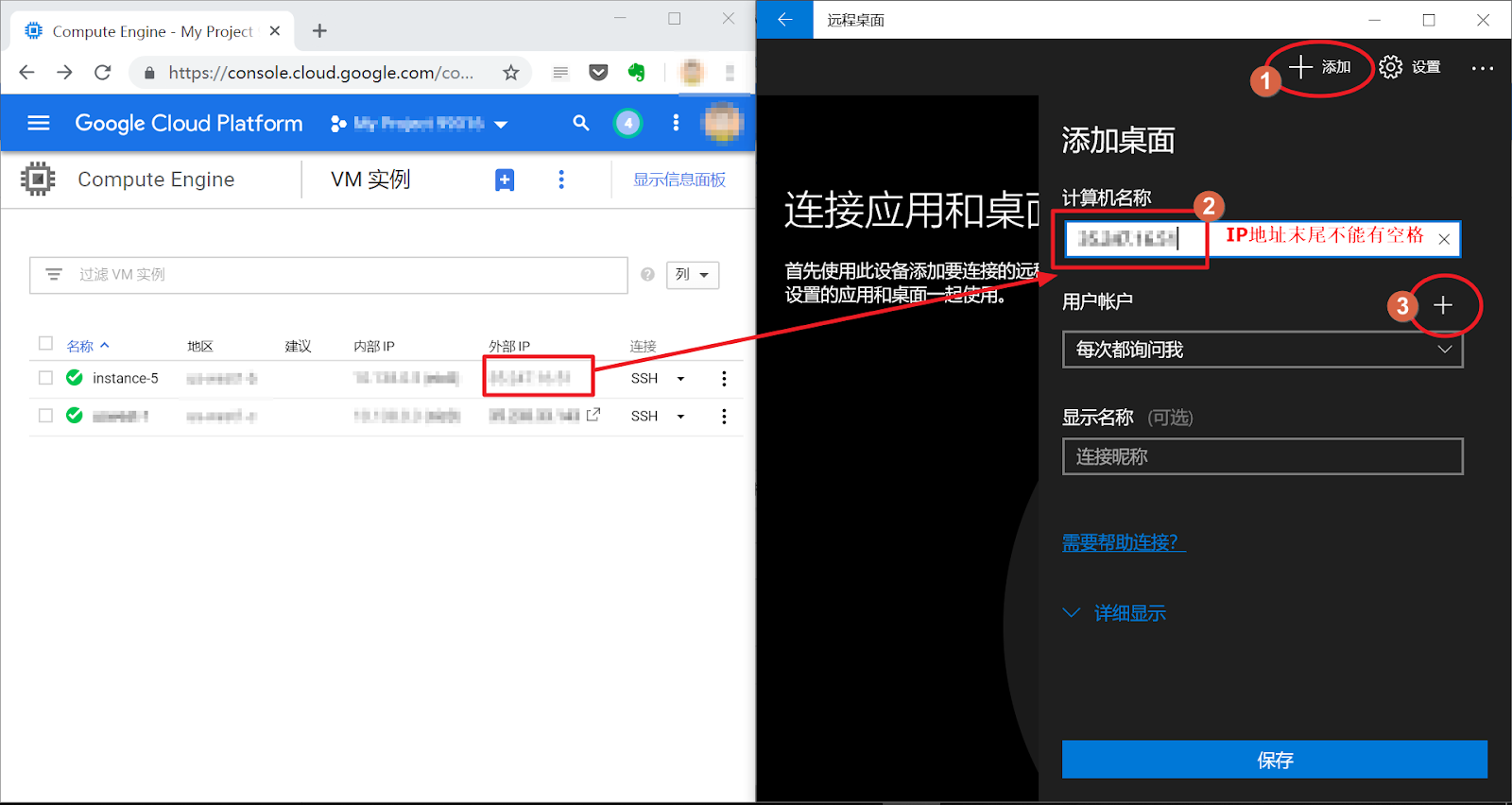 “添加”,输入VPS的IP地址,设置远程桌面的账户。