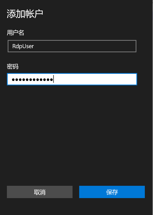选择刚刚添加的账户RdpUser,保存这个远程桌面。