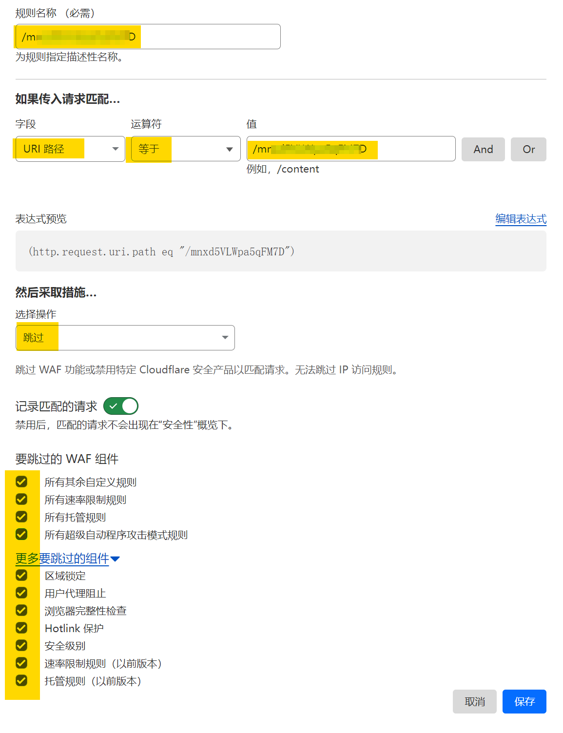 Cloudflare界面有所变化,现在在 安全性 里面 的 WAF 创建规则