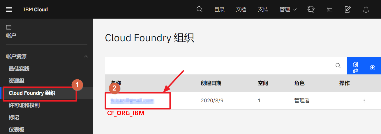 箭头所指就是 CF_ORG_IBM 组织点击组织名