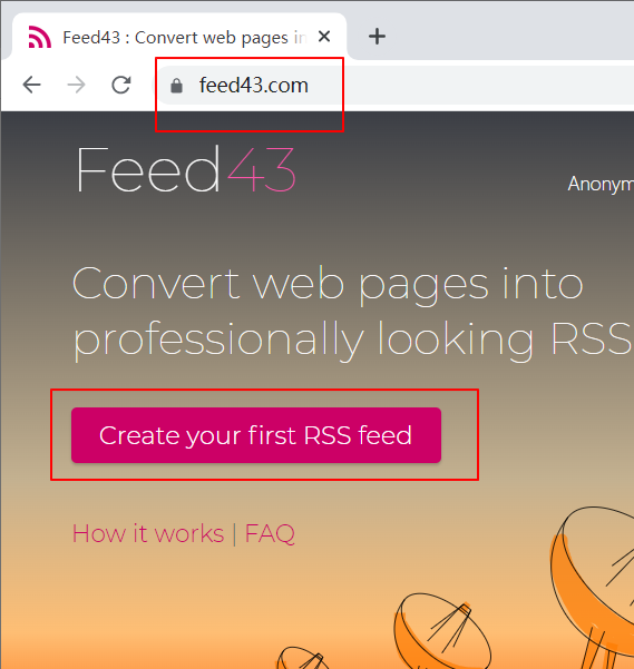 1. 打开feed43.com,开始创建RSS Feed