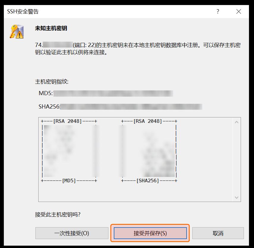 如果是第一次登录这个主机, 会弹出一个确认指纹的窗口.