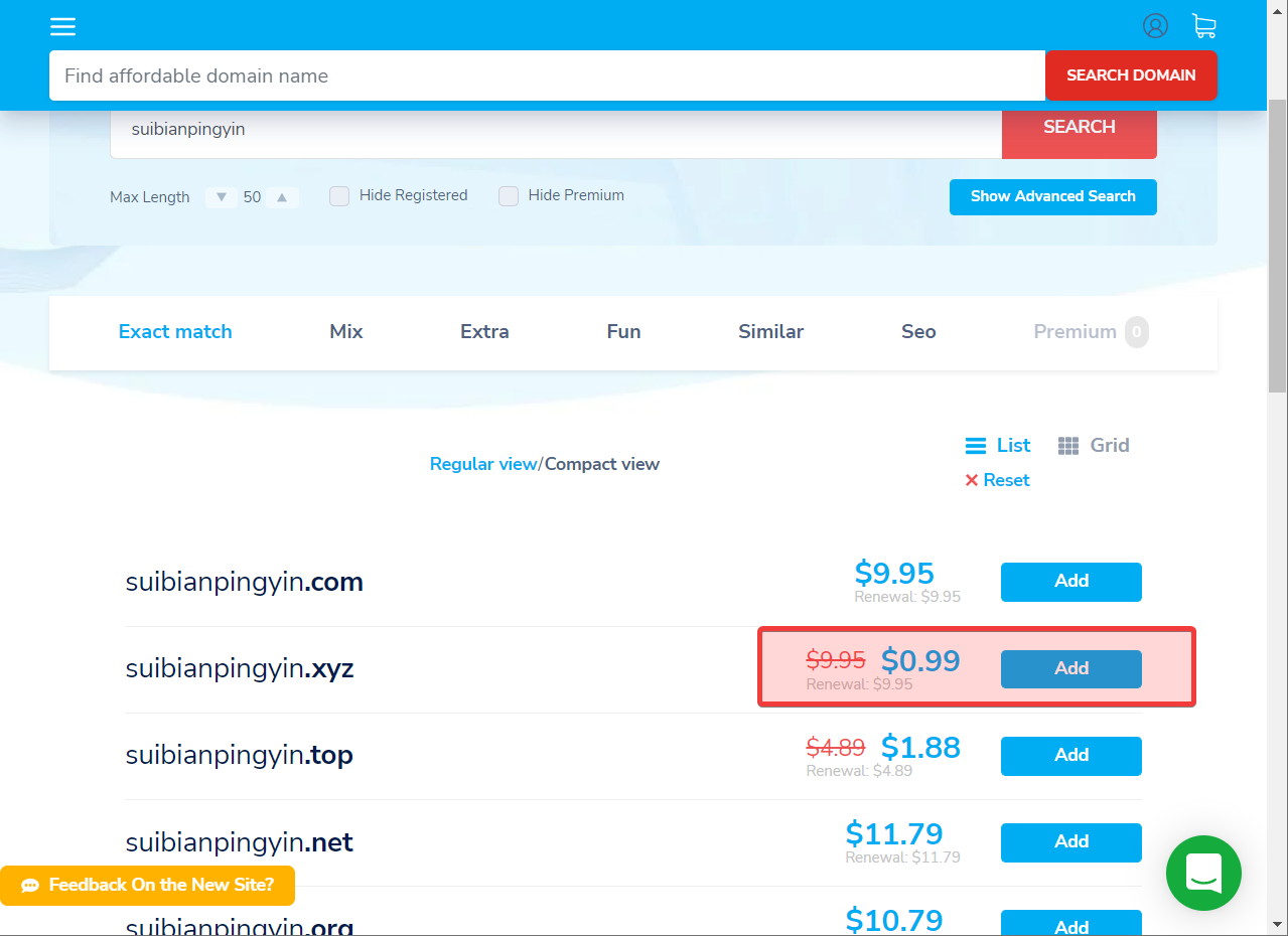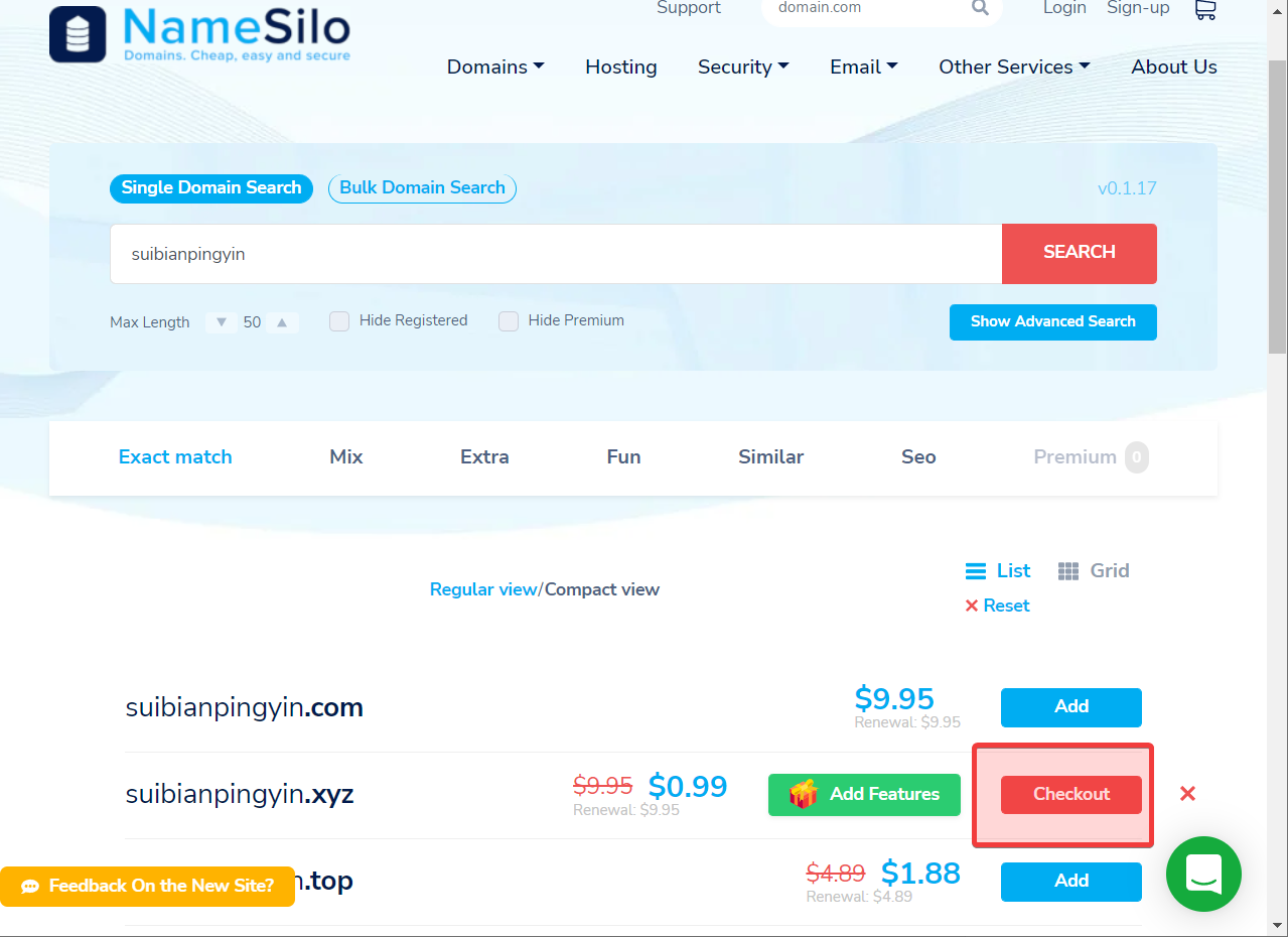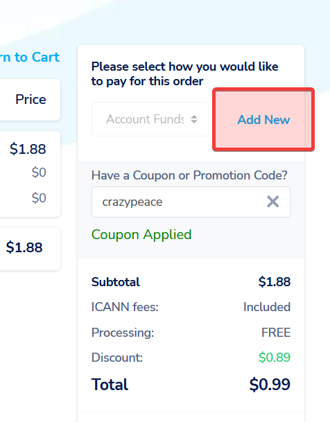 如果你选了超过$1.00 的域名,可以用 crazypeace 或 crazyzelikpeace 优惠$1 最小付款金额 $0.99