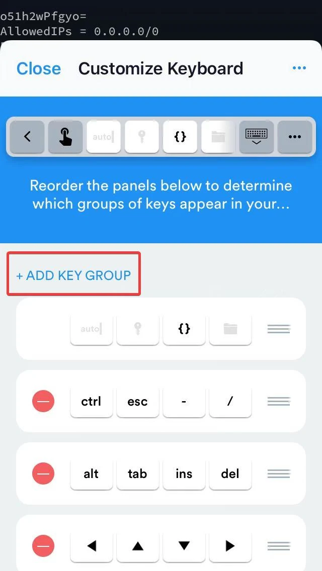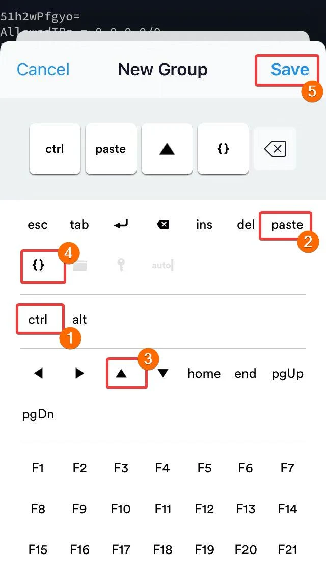 Termius 附加键盘设置为 ctrl paste ⬆ {}