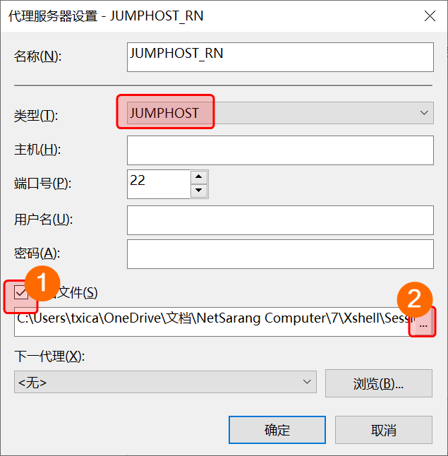 用户名密码填目标VPS的设置Proxy项添加Proxy类型为 JUMPHOST