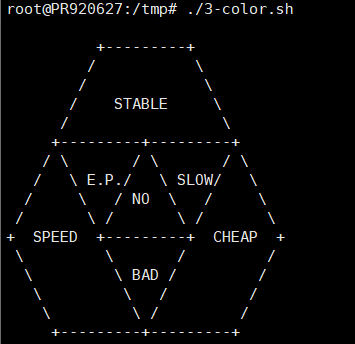 有一天, 在Telegram群里遇到一条消息, 好想用VPS三色图回应. 但是那个群组里不让发贴纸, 我不知道为什么那一时刻没有用截图, 而是有了一个强烈的想法, 要用ASCII字符拼一个三色图.