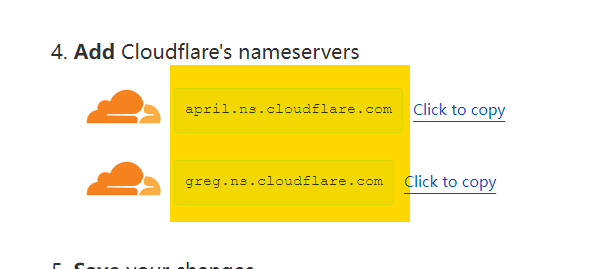 把原有的nameserver全部删掉,填写Cloudflare提供的。