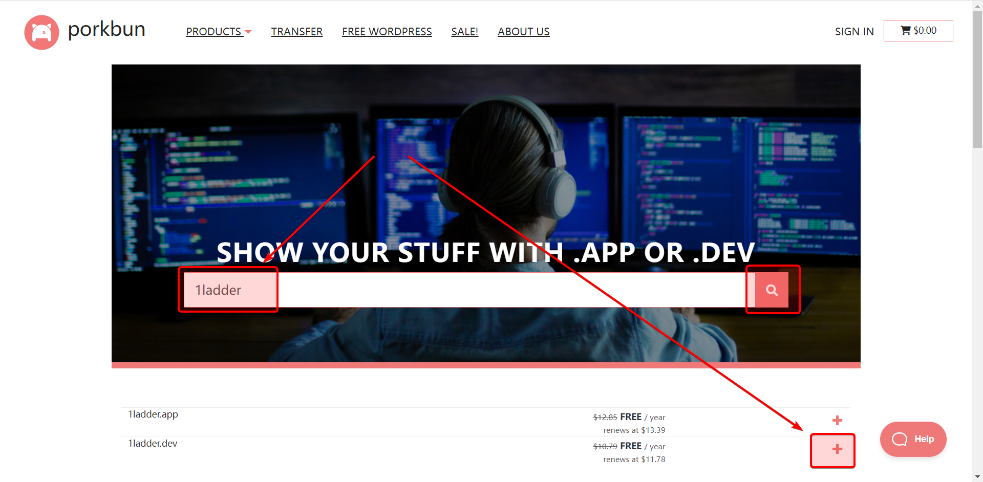 那么来 porkbun.com 申请免费的.dev .app 域名吧