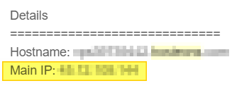 注意你的邮箱,会收到一封来自hostEONS.com, 标题为"VPS Activation Details"的邮件, 下面这一段信息中的Main IP就是VPS的公网IP。