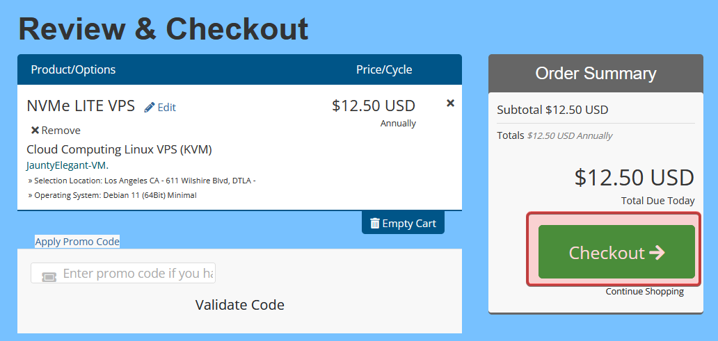 VirMach VPS 购买流程 500M带宽 500G流量 10G存储 384M内存 年付$12.5