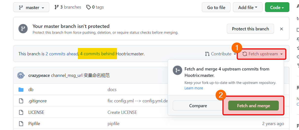 如果你的fork的分支的上游修改了代码,要如何与上游同步呢?当然你可以删掉你的fork再重新fork一份。你也可以从上游merge到你的分支。