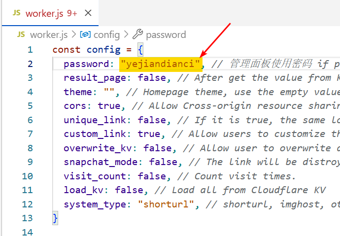 const config = {password: "testpassword", // 管理面板使用密码 // if password != null, then use this config; otherwise, read password from KV.result_page: false, // 是否用特定的result页面来显示value // After get the value from KV, if use a page to show the result.theme: "", // 管理面板的主题 // Homepage theme, use the empty value for default theme. To use urlcool theme, please fill with "theme/urlcool" .cors: true, // 是否允许CORS使用API // Allow Cross-origin resource sharing for API requests.unique_link: false, // 一个长链是否只有唯一的短链(会增加写入的使用量) // If it is true, the same long url will be shorten into the same short urlcustom_link: true, // 允许自定义短链 // Allow users to customize the short url.overwrite_kv: false, // 允许覆盖已存在的key // Allow user to overwrite an existed key.snapchat_mode: false, // 短链只能访问一次(访问后就删除了) // The link will be distroyed after access.visit_count: false, // 使用记数(会大大增加写入的使用量, 多人共用不推荐打开) // Count visit times.load_kv: false, // 从KV加载全部数据(自用推荐打开, 多人共用会看到别人的数据) // Load all from Cloudflare KVsystem_type: "shorturl", // 系统的功能定义 // shorturl, imghost, other types {pastebin, journal}}