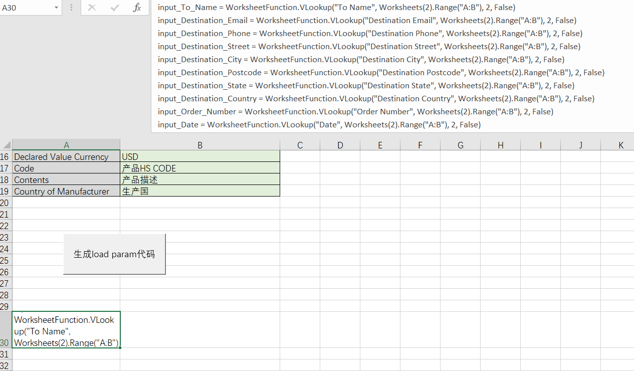 当然生成的代码只能写在excel表格里,需要手动复制再粘贴到代码编辑器里。