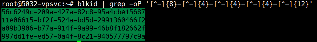 blkid | grep -oP '[^-]{8}-[^-]{4}-[^-]{4}-[^-]{4}-[^-]{12}'