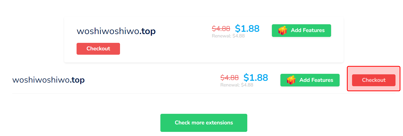 同样的 .xyz .top 域名, 它的价格比 上面这两位贵一点点.