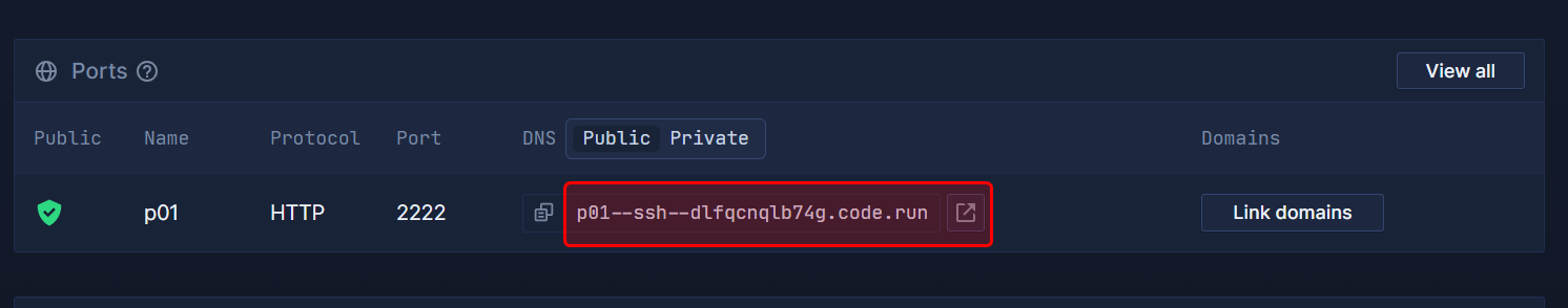以刚刚搭建的 https://p01--ssh--dlfqcnqlb74g.code.run/ 为例. 要在浏览器里面访问