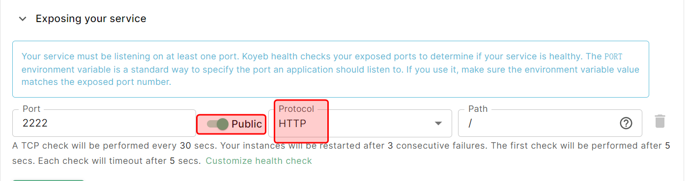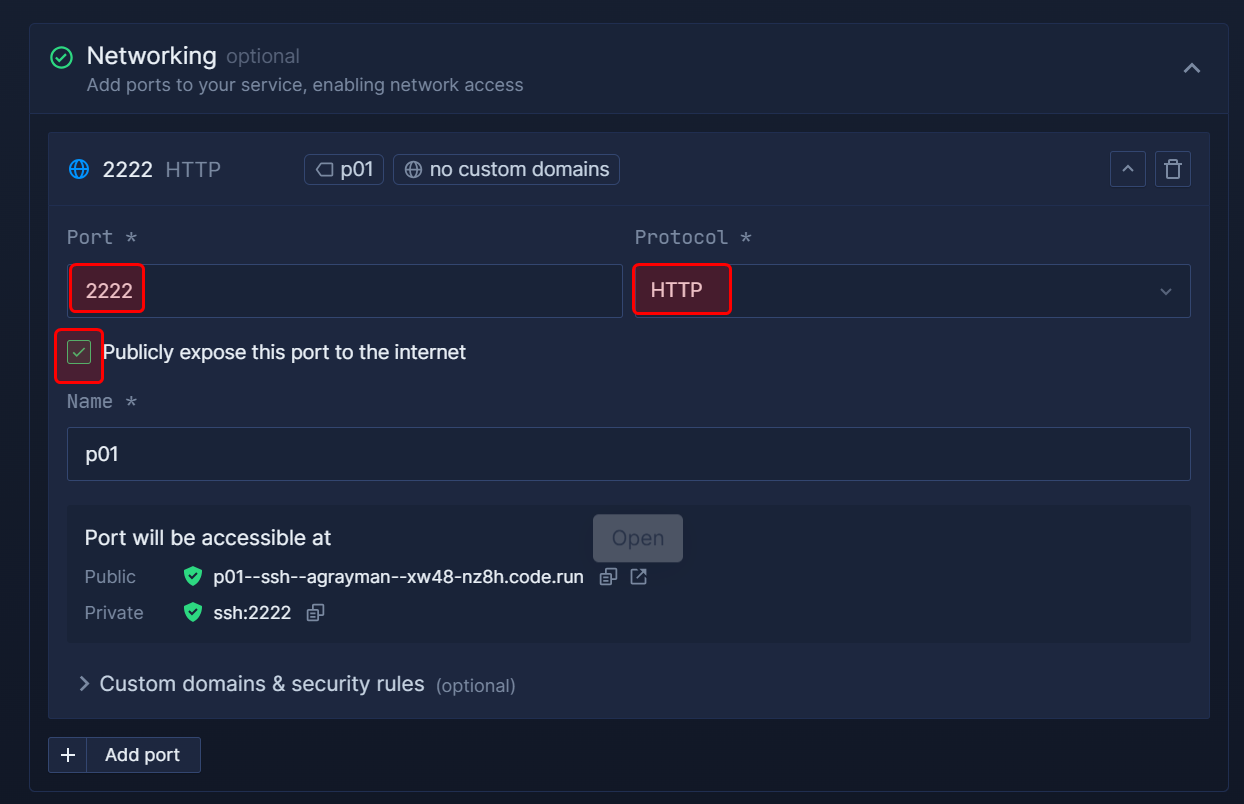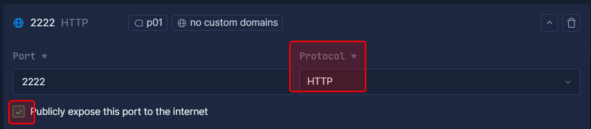 往下拉, Networking 端口, 设置 HTTP 端口为 2222