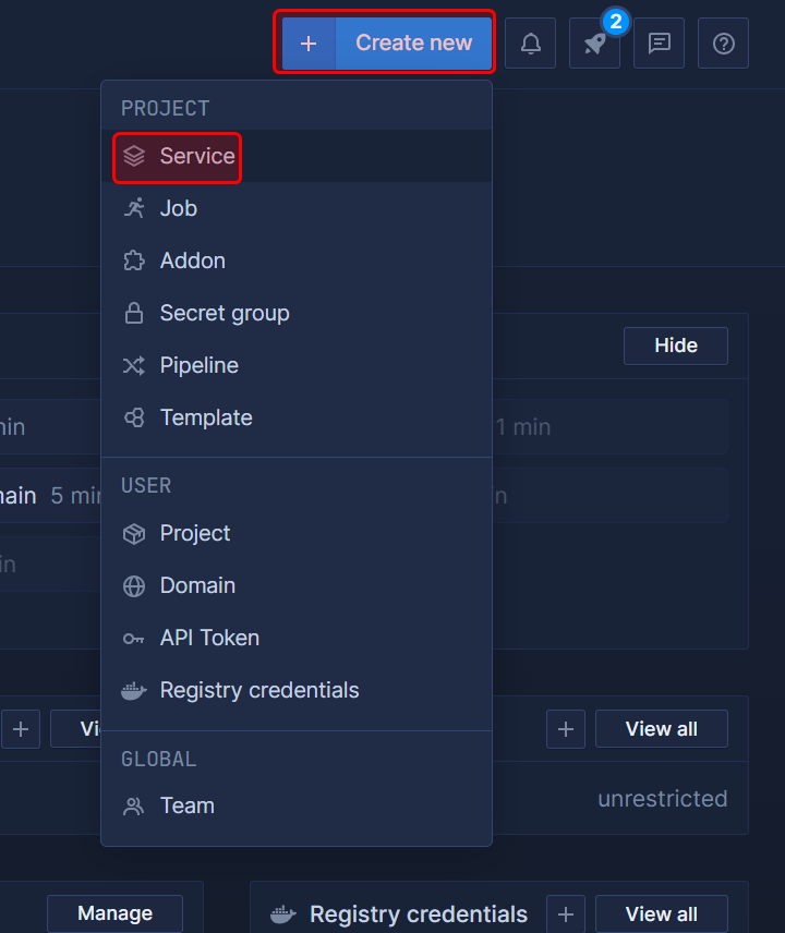 拉到最底下 Create Service可以关注下这个状态, 从 Deploying 变到 Running 的时候就部署完成了.如果部署不成功, 点这里查看日志. 求助的时候有用.