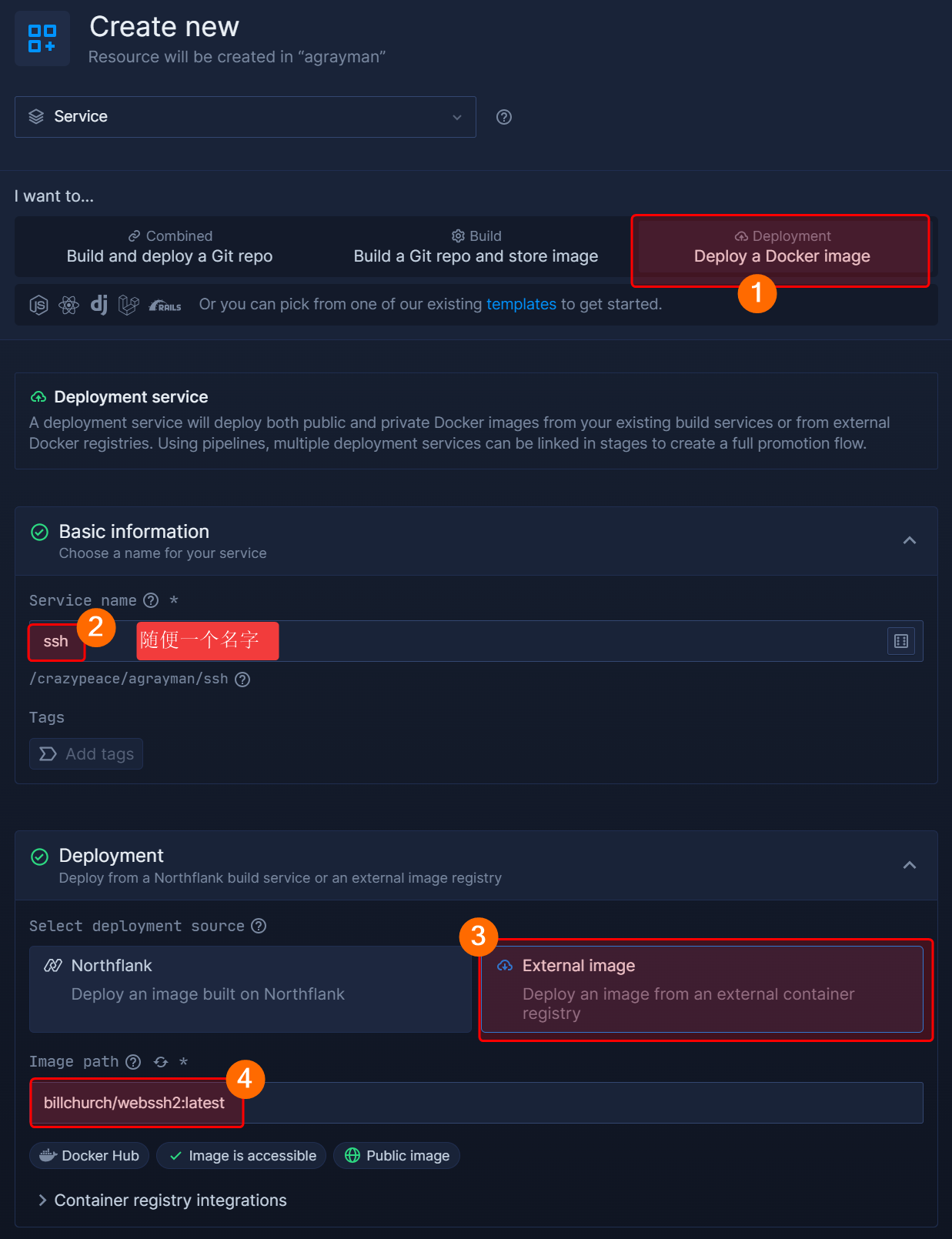 现在换个平台, 部署一个新的应用. 用northflank部署billchurch/webssh2