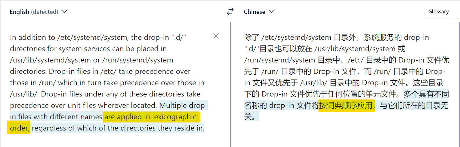 注意到, "多个具有不同名称的 drop-in 文件将按词典顺序应用"