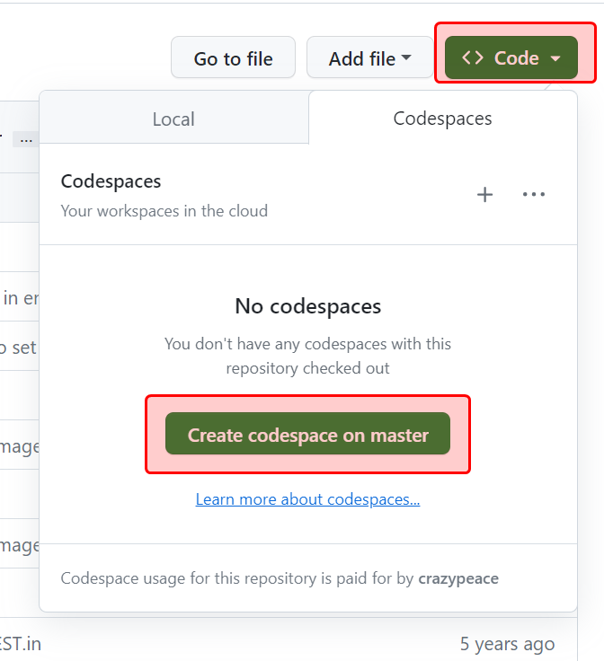 等待 Codespaces 的整个页面慢慢加载完, 在下方找到 终端
