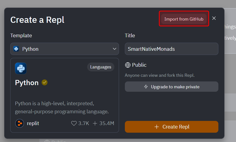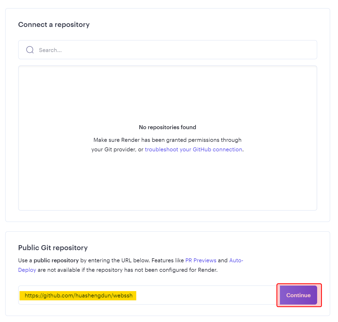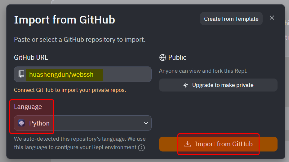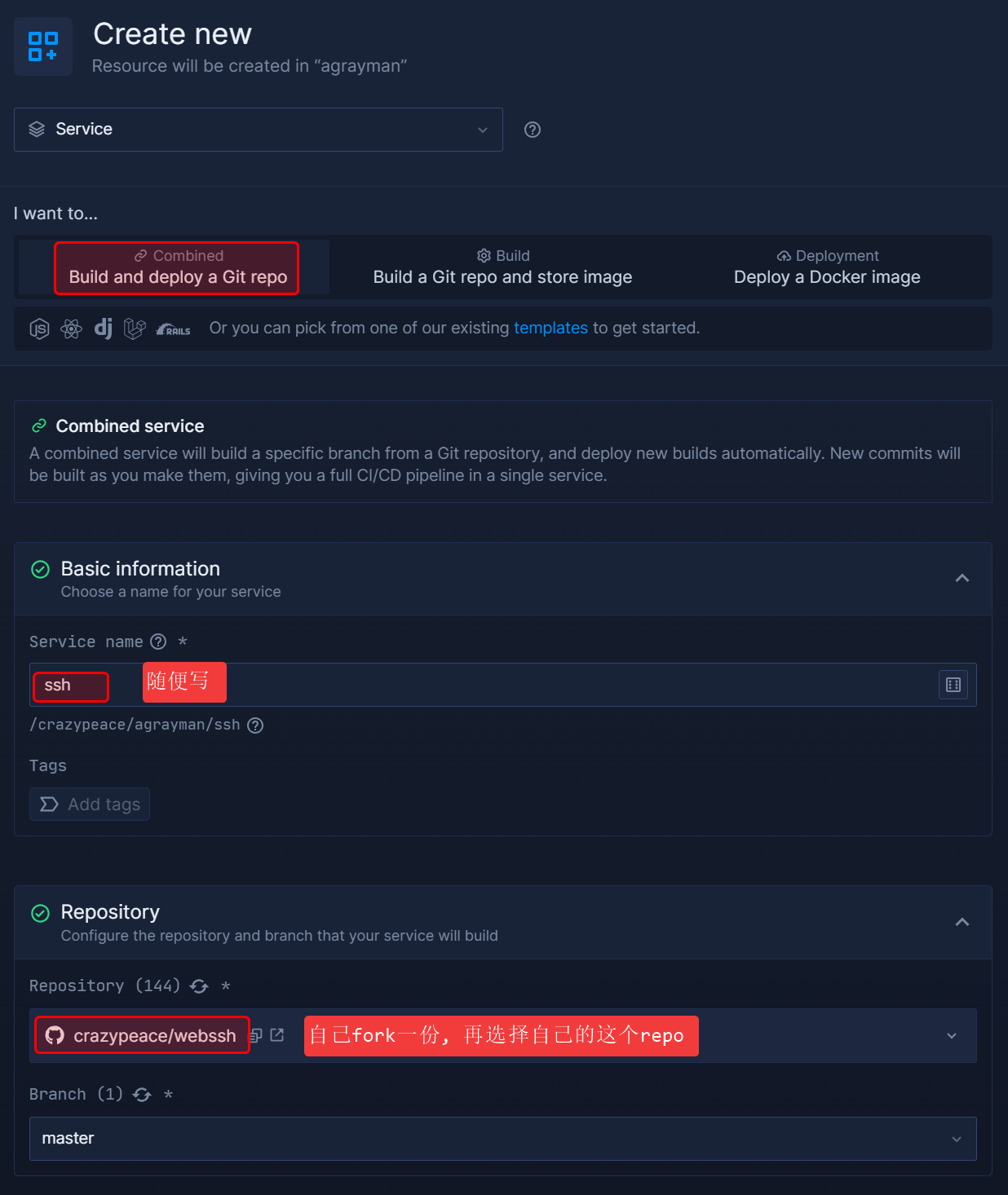 这个webssh项目和前面几个webssh都不一样. 不是加载Docker镜像, 而是加载 Github Repo, 或者创建 Python 环境; 然后设置启动命令.