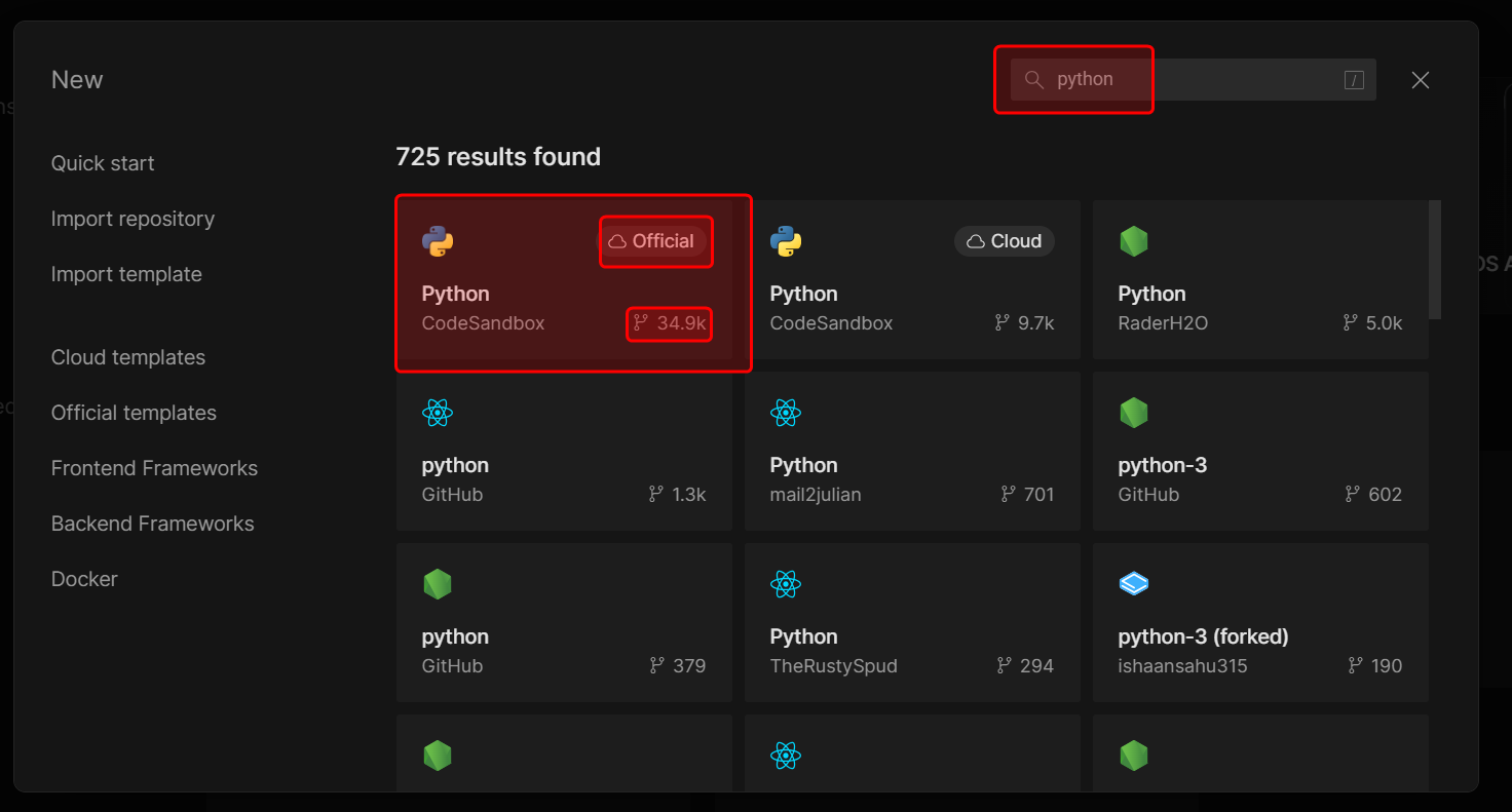 输入 python 过滤, 选使用的人最多的, 带 Offical 字样的.