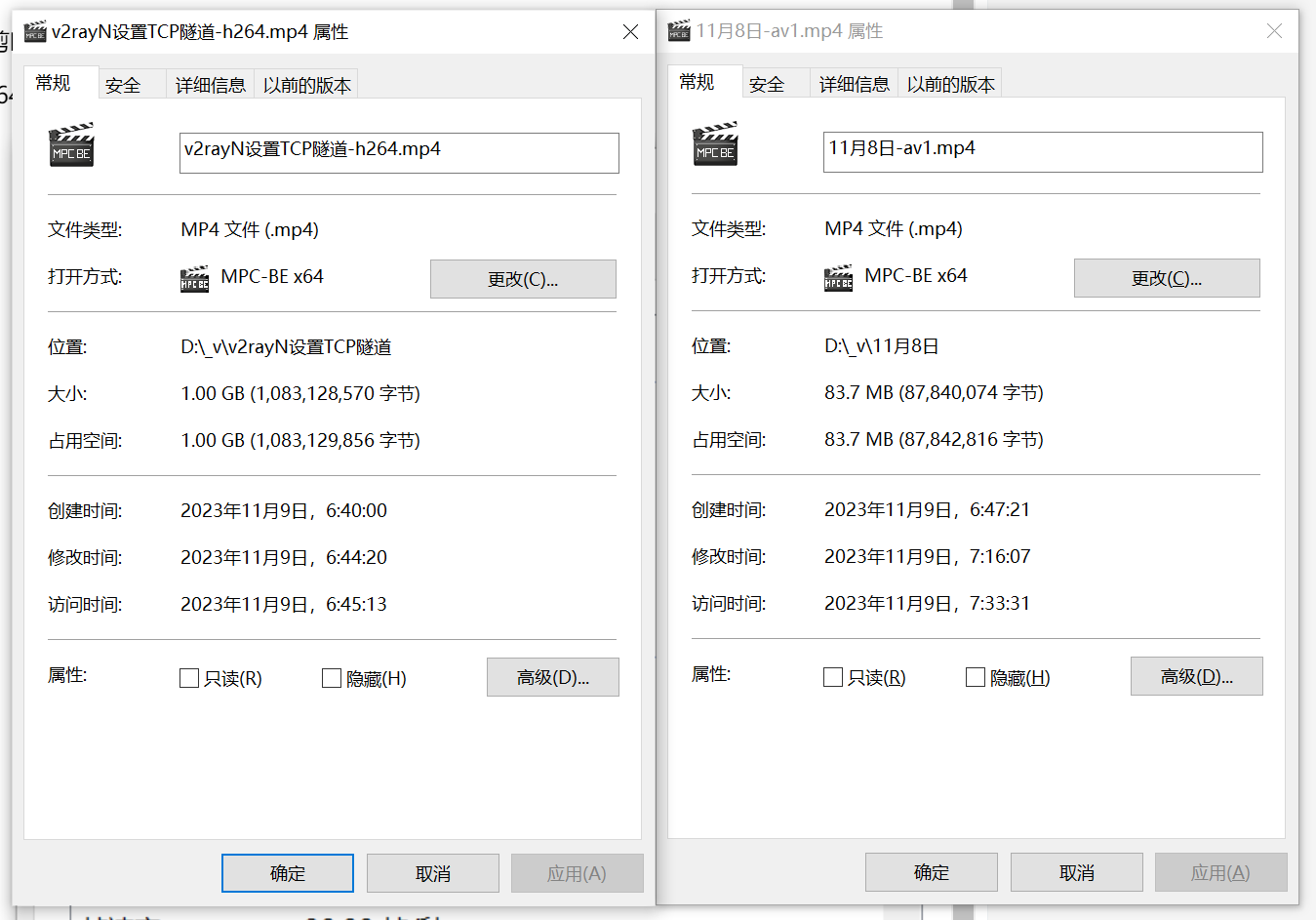 H264 最终视频大小 1GB, AV1 最终视频大小 84MB.