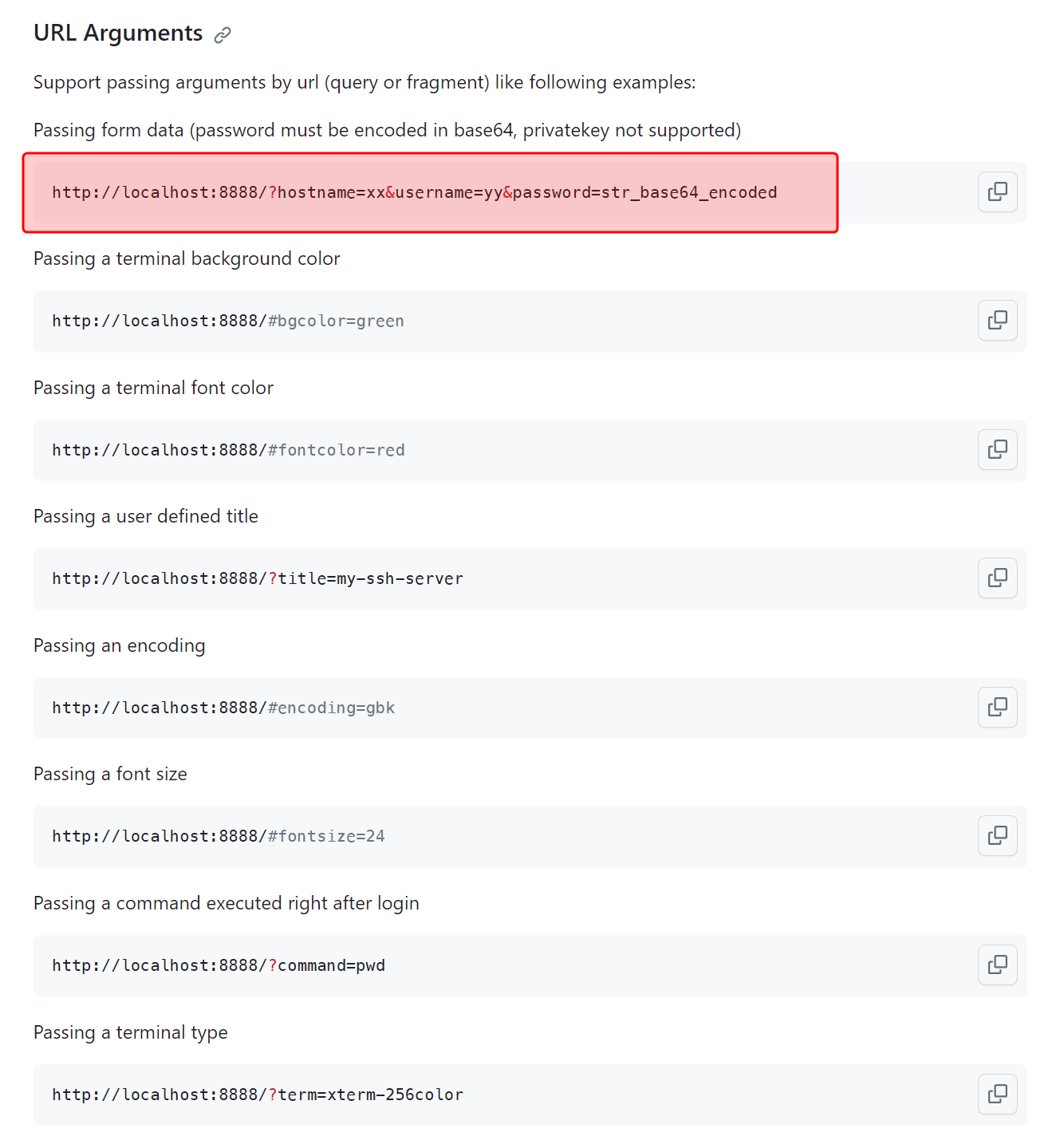 本来 huashengdun/webssh 就有带参数的功能.