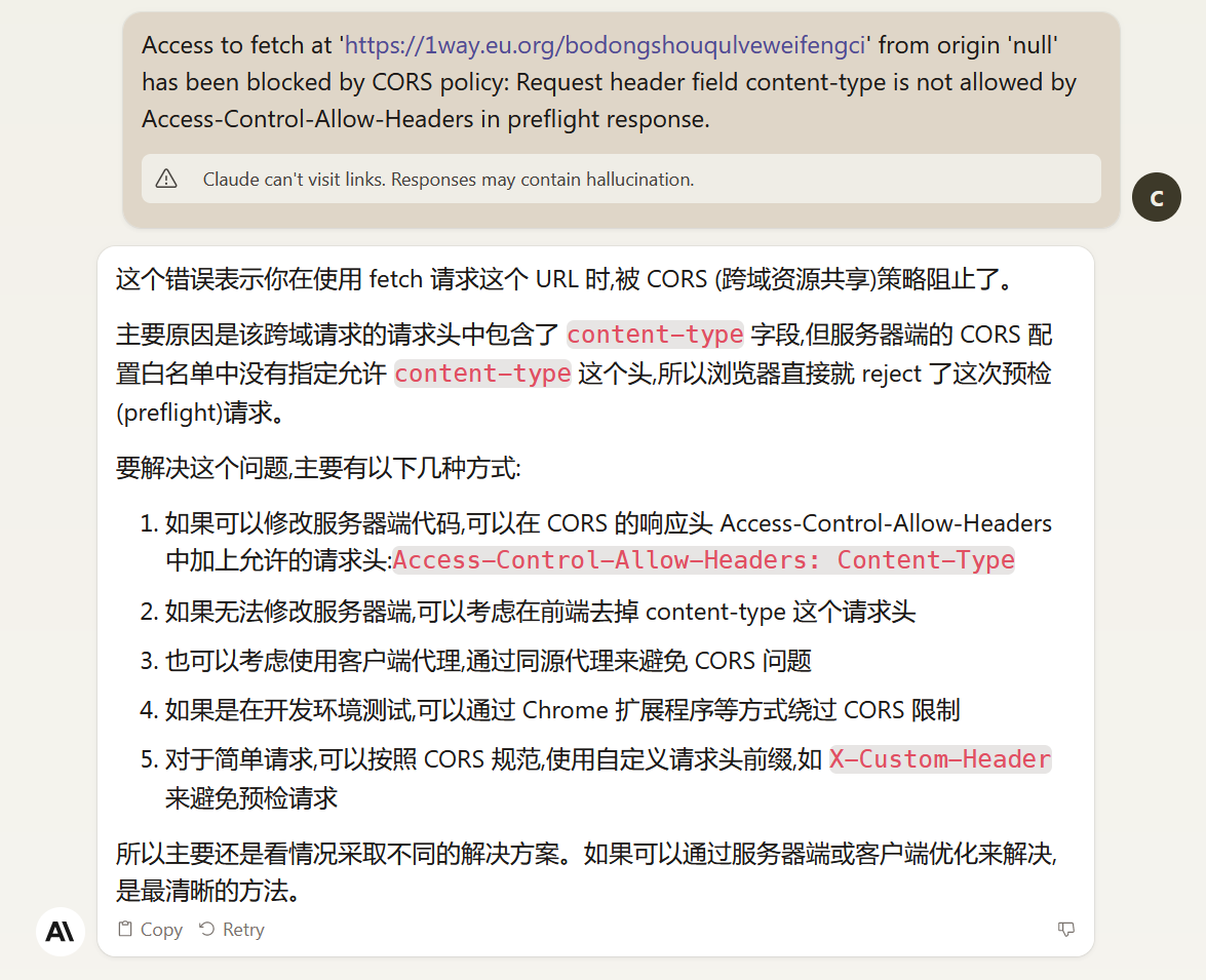 Access to fetch at 'https://1way.eu.org/bodongshouqulveweifengci' from origin 'null' has been blocked by CORS policy: Request header field content-type is not allowed by Access-Control-Allow-Headers in preflight response.