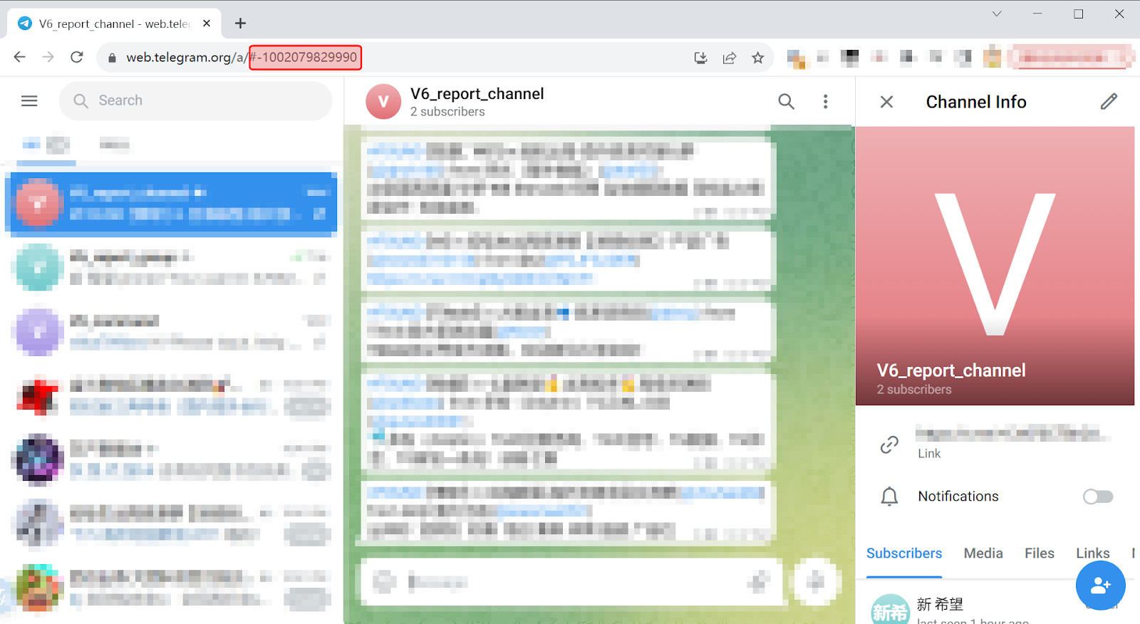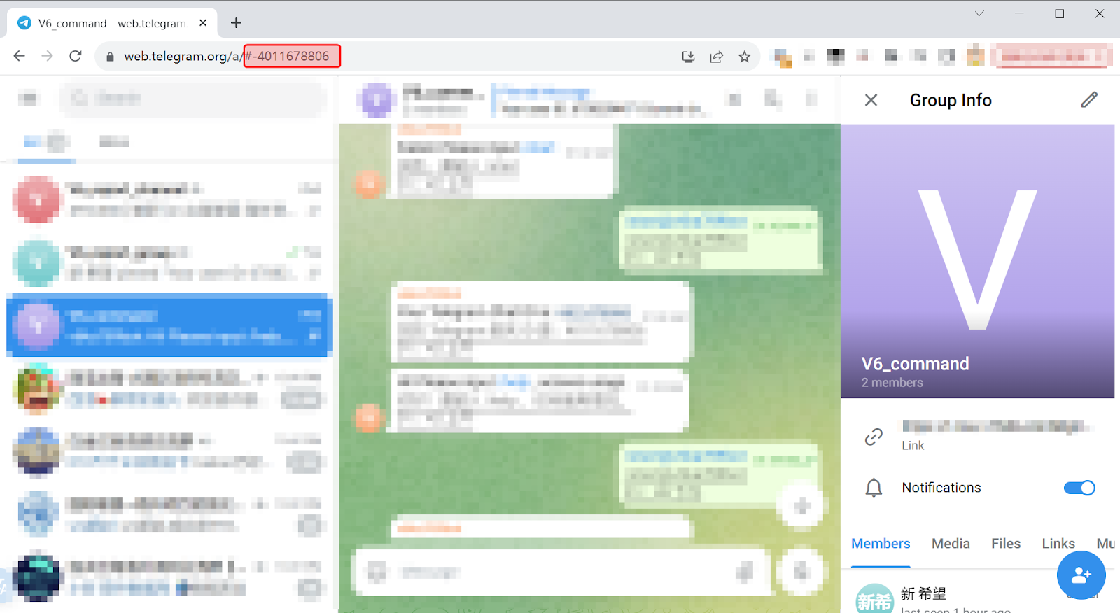 在你使用网页web版的telegram时, 你可以在浏览器的地址栏发现这样的ID