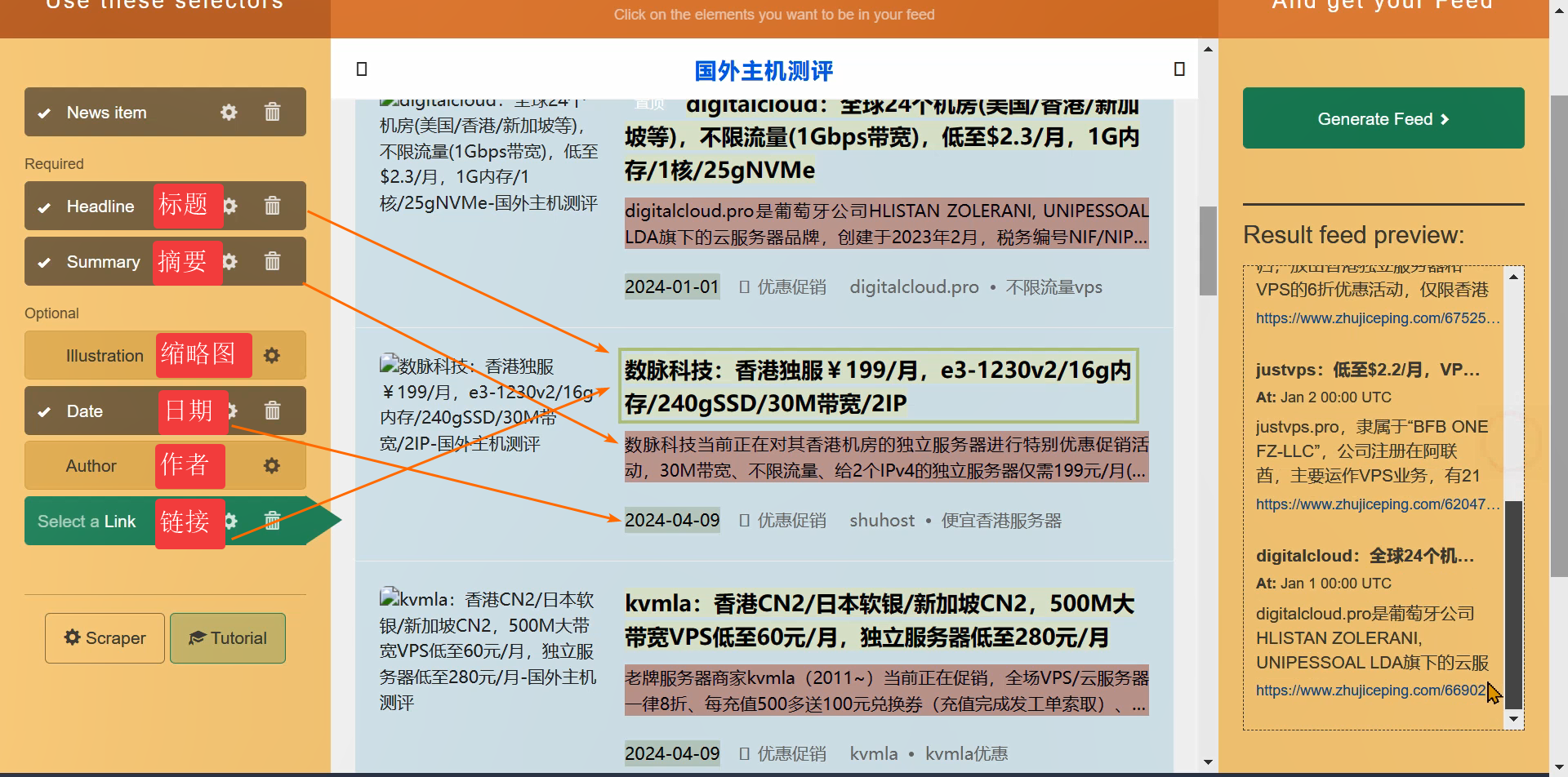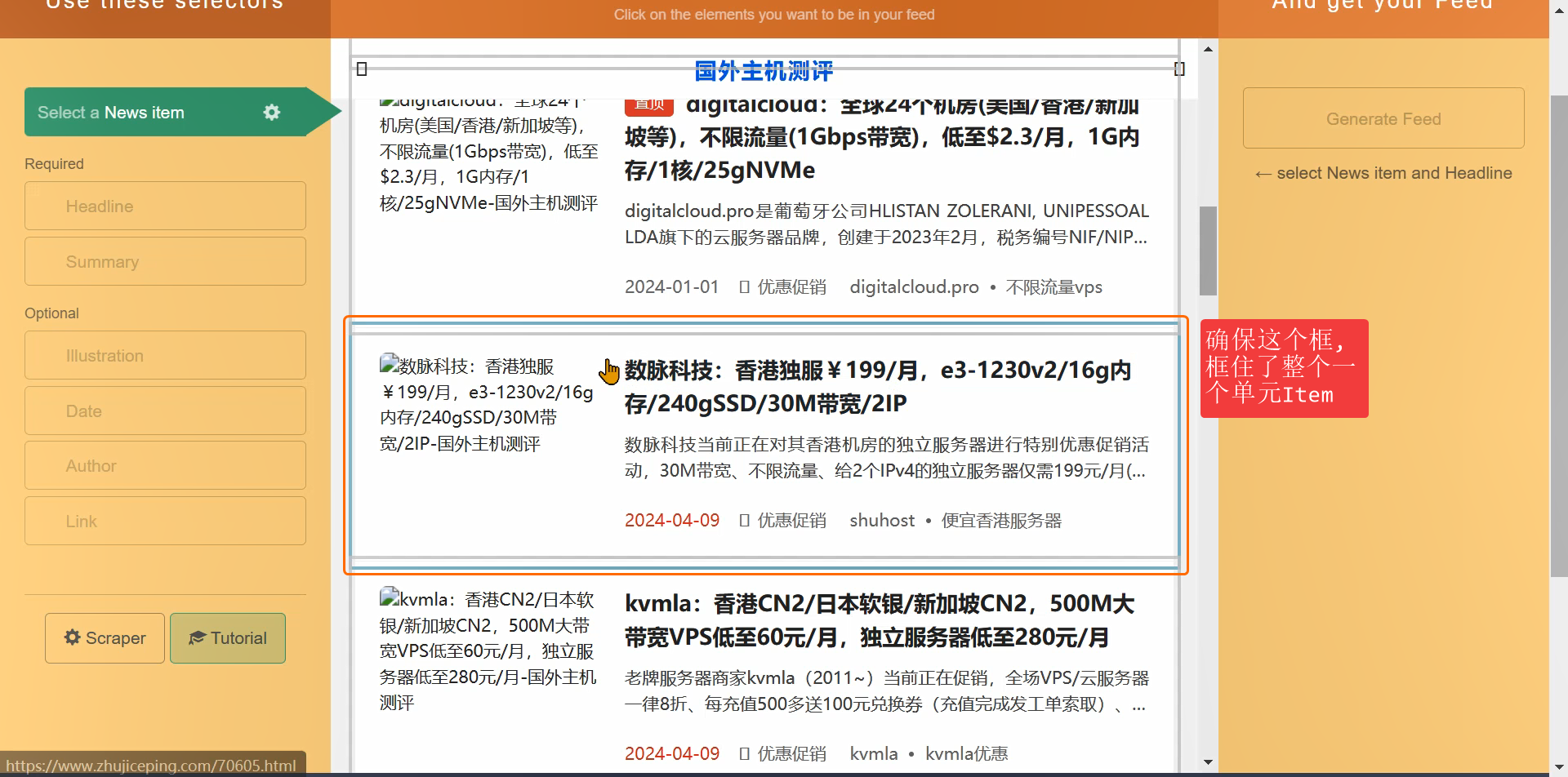 用FetchRSS制作国外主机测评zhujiceping的RSS