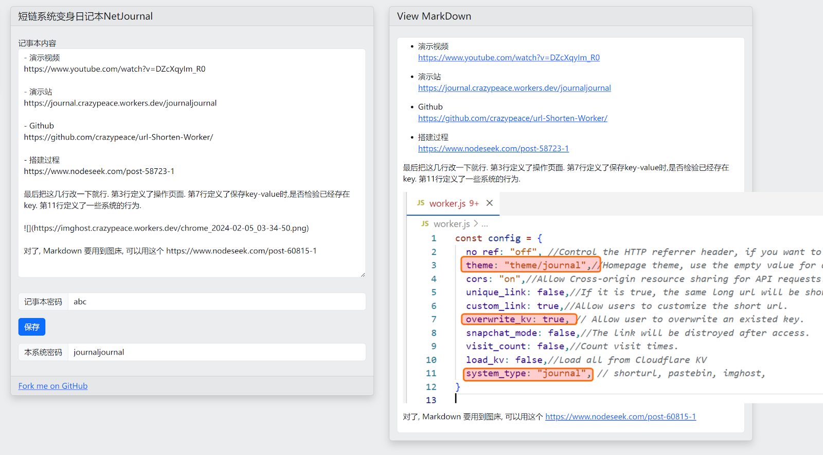 白嫖worker 自建短链服务 Url-Shorten-Worker 变身日记本 NetJournal 显示结果页面支持 Markdown