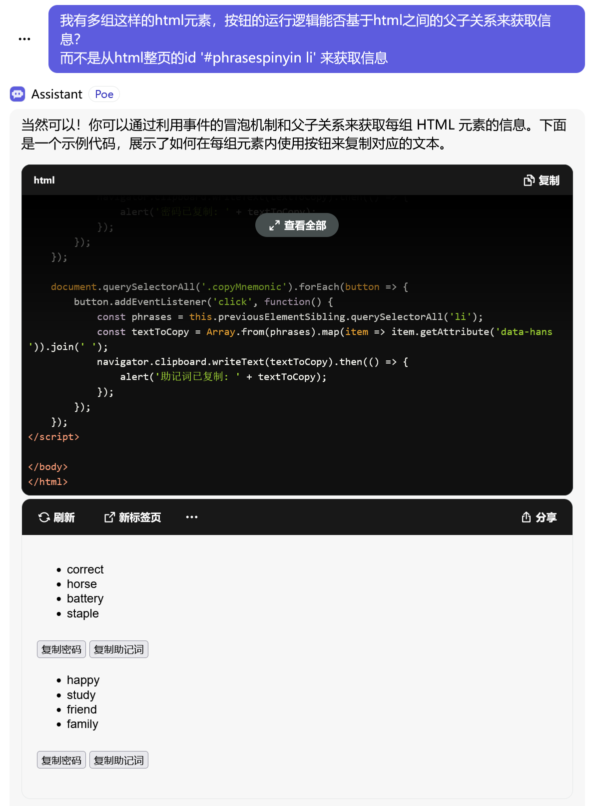 为了方便使用, 我觉得xkcd密码生成器页面提供复制按钮是一个不错的主意.