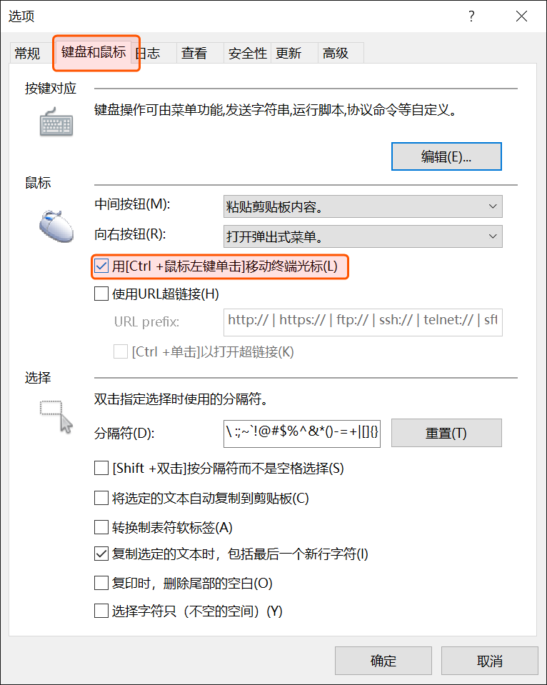 勾选 用 Ctrl + 鼠标左键单击 移动终端光标