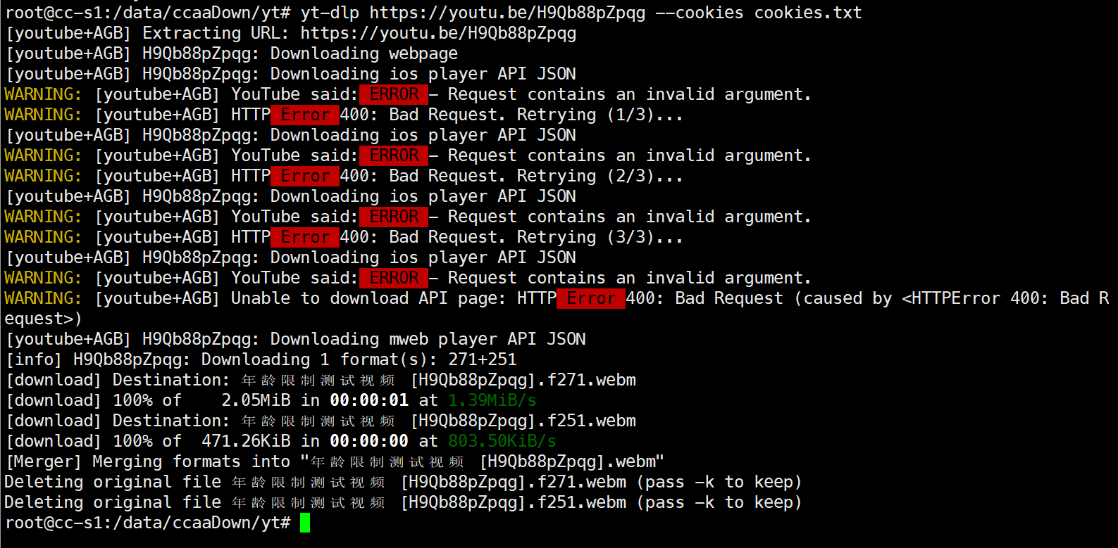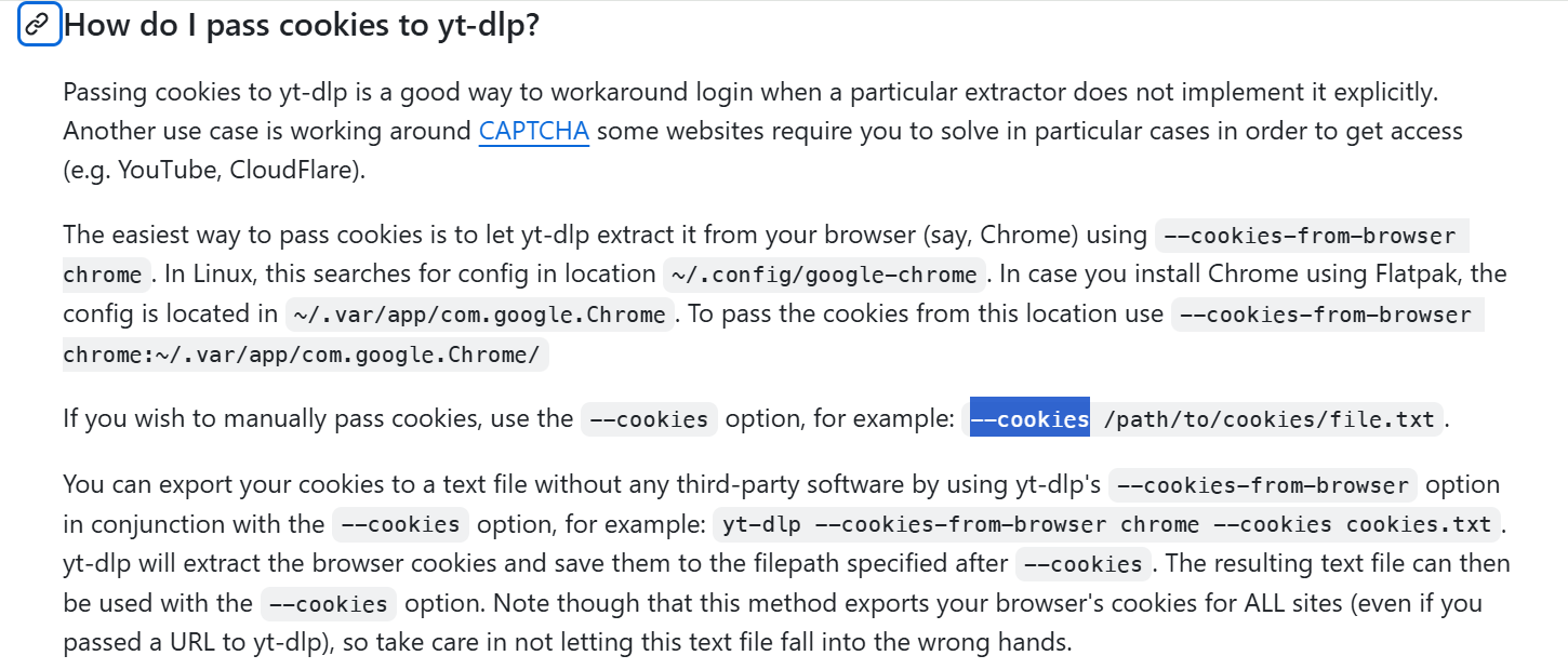 yt-dlp https://youtu.be/H9Qb88pZpqg --cookies cookies.txt