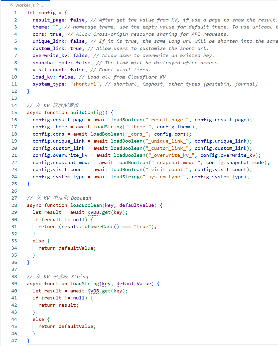 把 worker.js 里面的值当作默认值, 当KV中没有设置时, 维持程序运转.