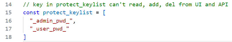 本项目目前保护两个KV, _admin_pwd_ 和 _user_pwd_ , 不允许用户 修改, 删除, 查询.