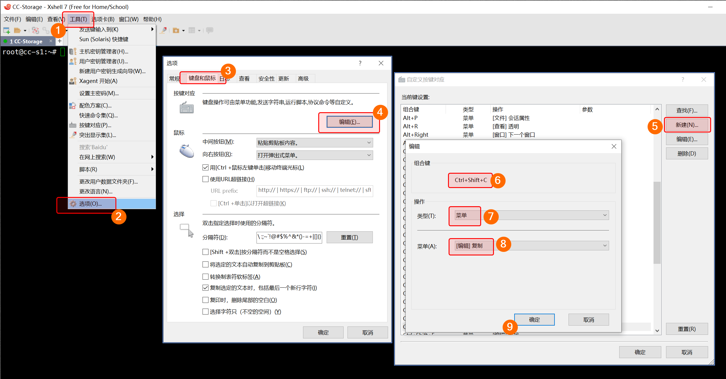 Xshell 设置 Ctrl+Shift+C 为复制功能 Ctrl+Shift+V 为粘贴功能