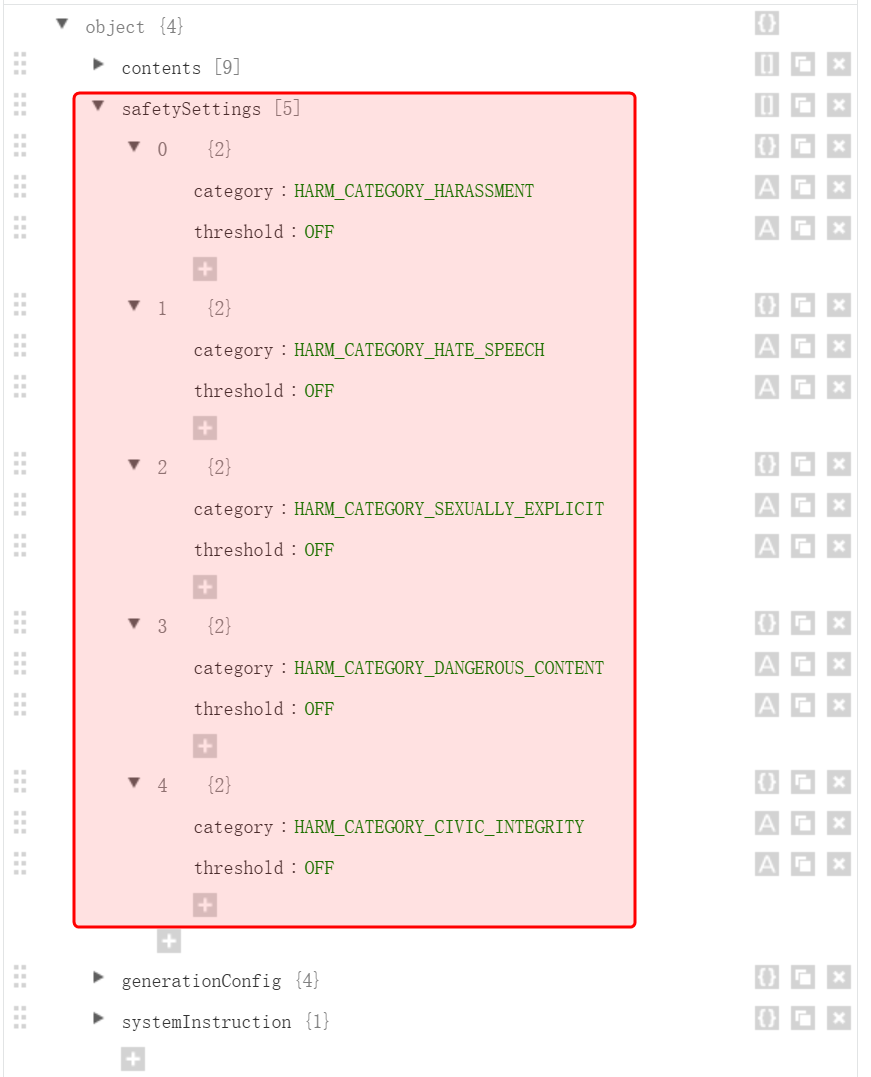 接下来的部分是 safetySettings