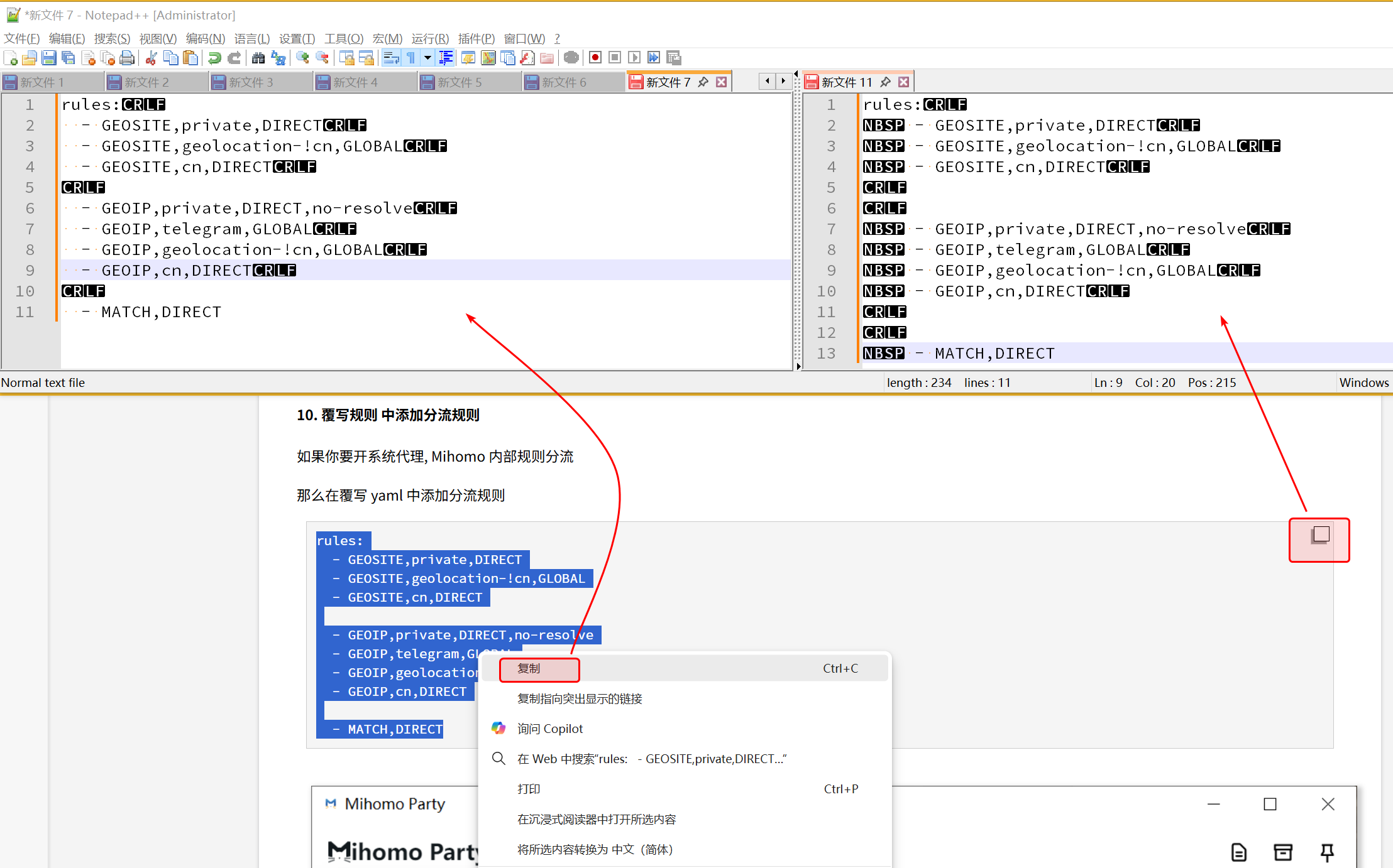 点击代码段的复制按钮, 得到的结果是右边的. (包含一些NBSP字符)